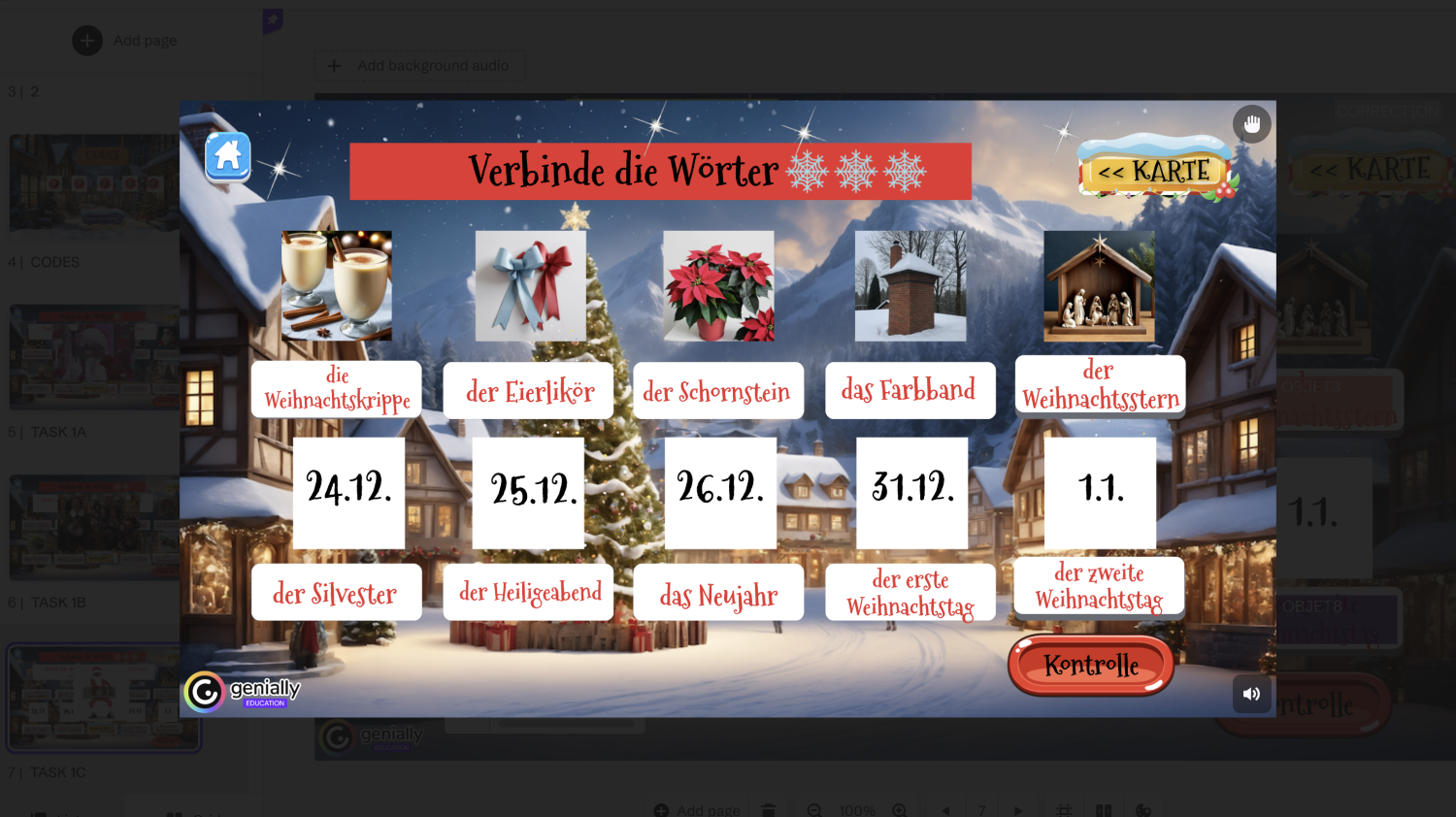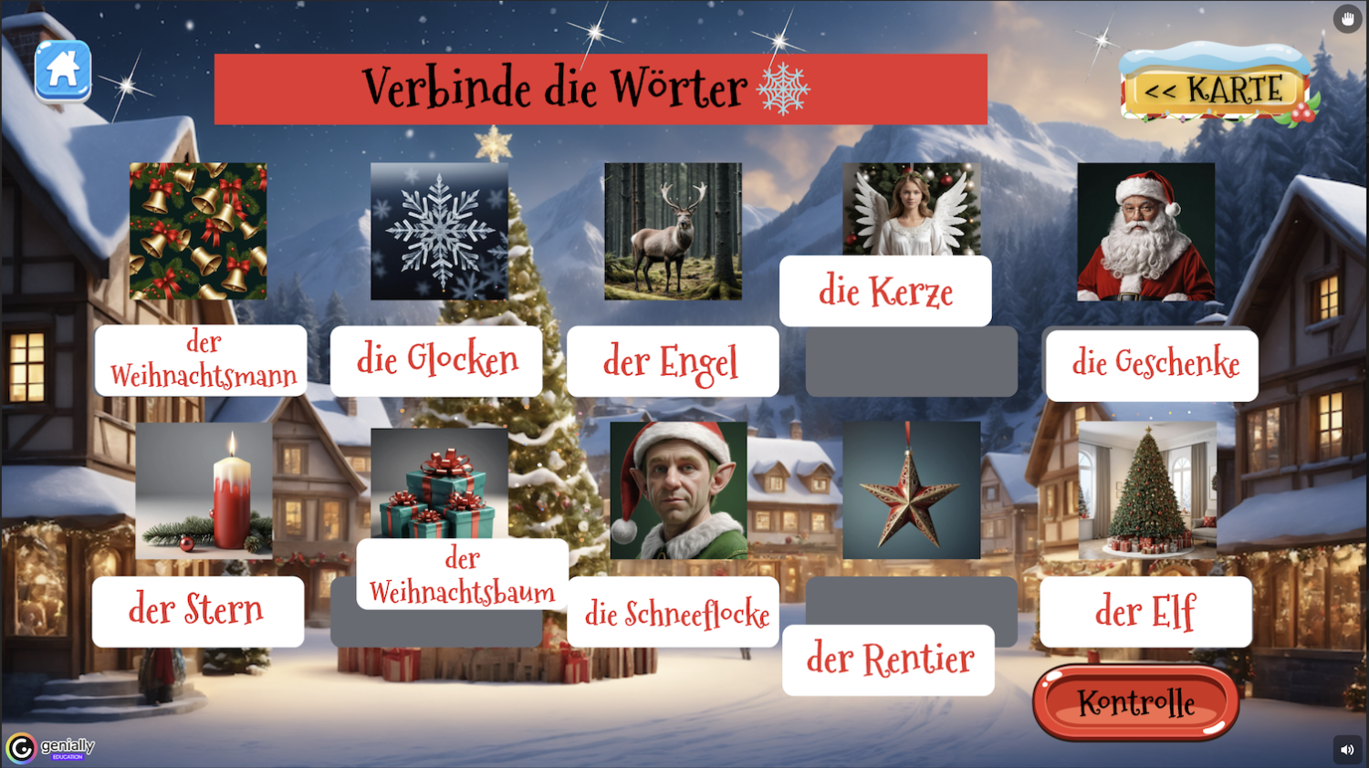 Materiál je zaměřen na Vánoce a vše kolem nich - obsahuje slovíčka, poslech, skládání puzzle a jiné zajímavé aktivity. Materiál je interaktivní, je potřeba internetové připojení a stolní PC nebo notebook. Můžete použít i mobil nebo tablet, postupujte ale raději podle instrukcí na konci PDF.
