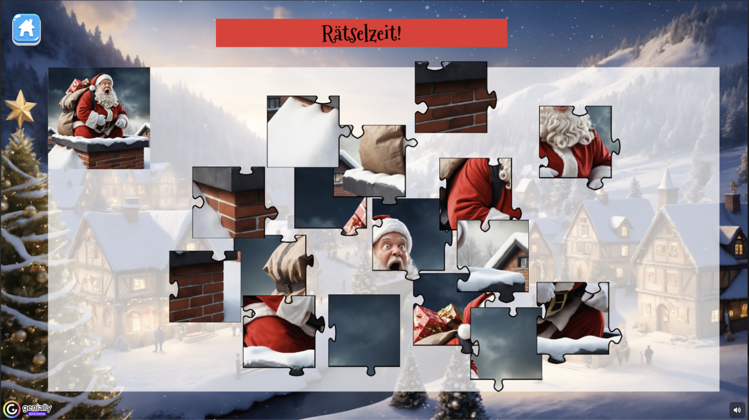 Úkol 1 a 2 - dvě různá puzzle s vánočními obrázky. Žáci podle předlohy skládají vánoční puzzle. Jednotlivé dílky do sebe pěkně zapadají (zacvaknou). Pokud některý nechce zapadnout, stačí poklikat myší po obrázku.