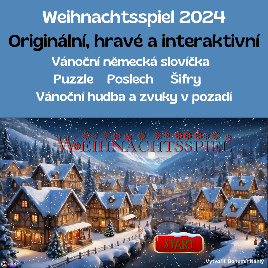 Představuji vám zábavnou interaktivní vánoční hru. Doporučuji podívat se na zrychlenou video ukázku celé hry! Jde o typ hry, ve které žáci musí postupně splnit 5 hlavních částí, které se skládají z dílčích menších úkolů. Za každý úkol získává (náhodný) kód.