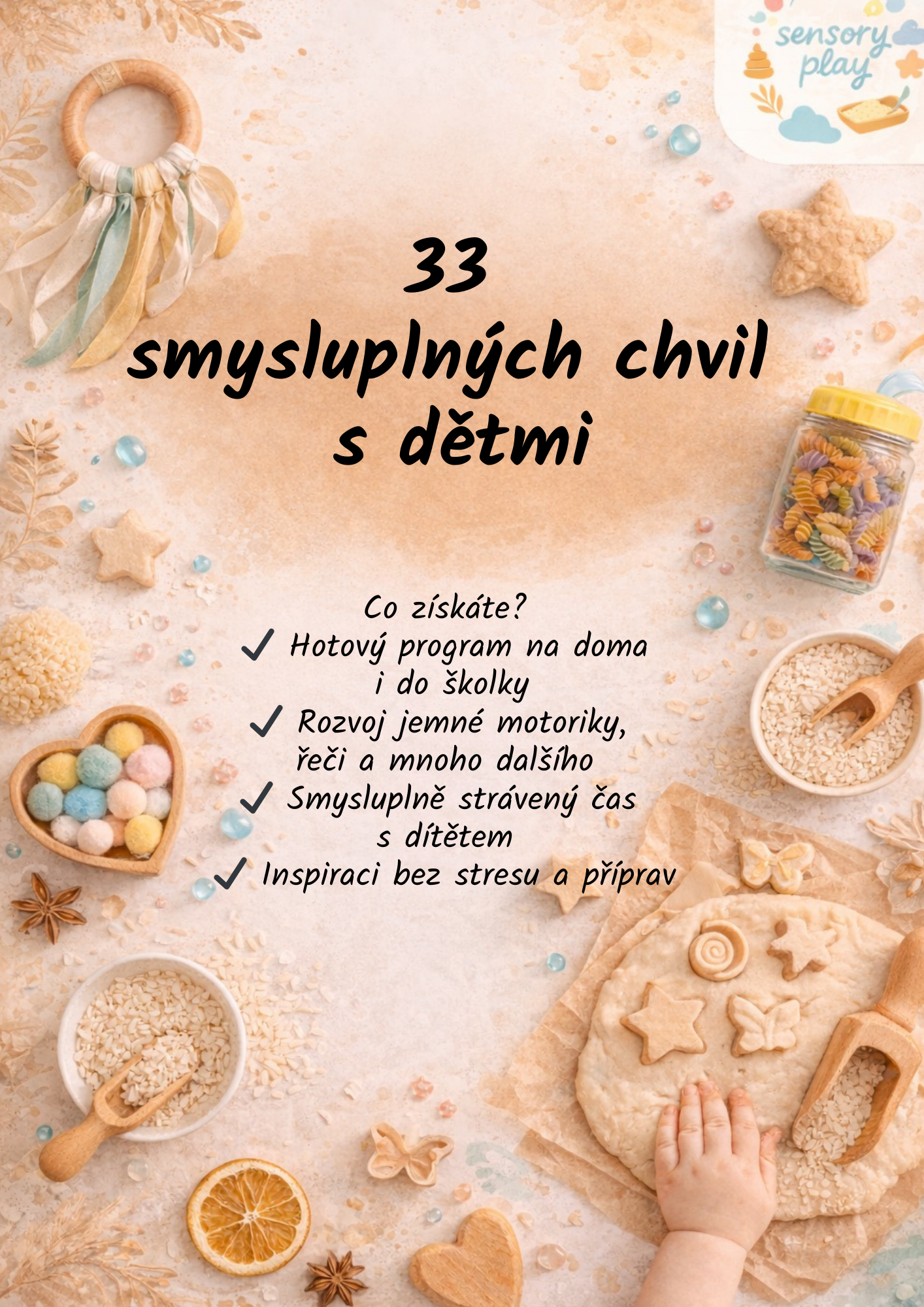 Tento soubor obsahuje 33 pečlivě vybraných tipů na smyslové aktivity, které propojují hru, objevování a rozvoj. Aktivity jsou navržené tak, aby byly snadno připravitelné z běžně dostupných pomůcek a zároveň měly skutečný přínos pro dětský vývoj.