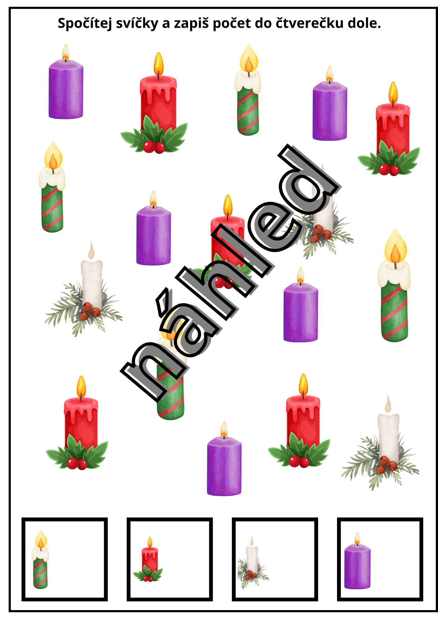- Počítání svíček a zaznamenání počtu do čtverečku