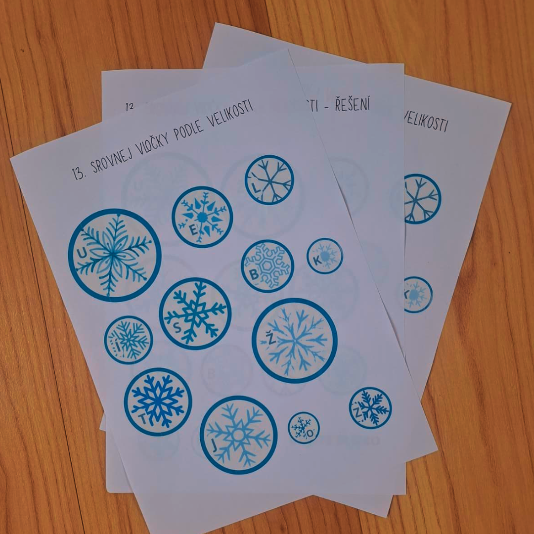13. Srovnej vločky podle velikosti a vylušti tajenku