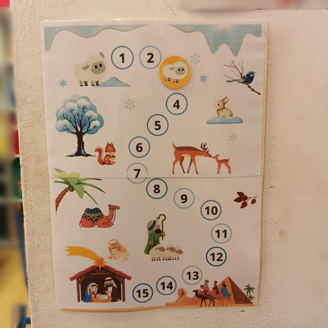 - Každé políčko odpovídá jednomu úkolu. Děti plní každý den nový úkol a když jej splní, může se ovečka v kalendáři posunout.