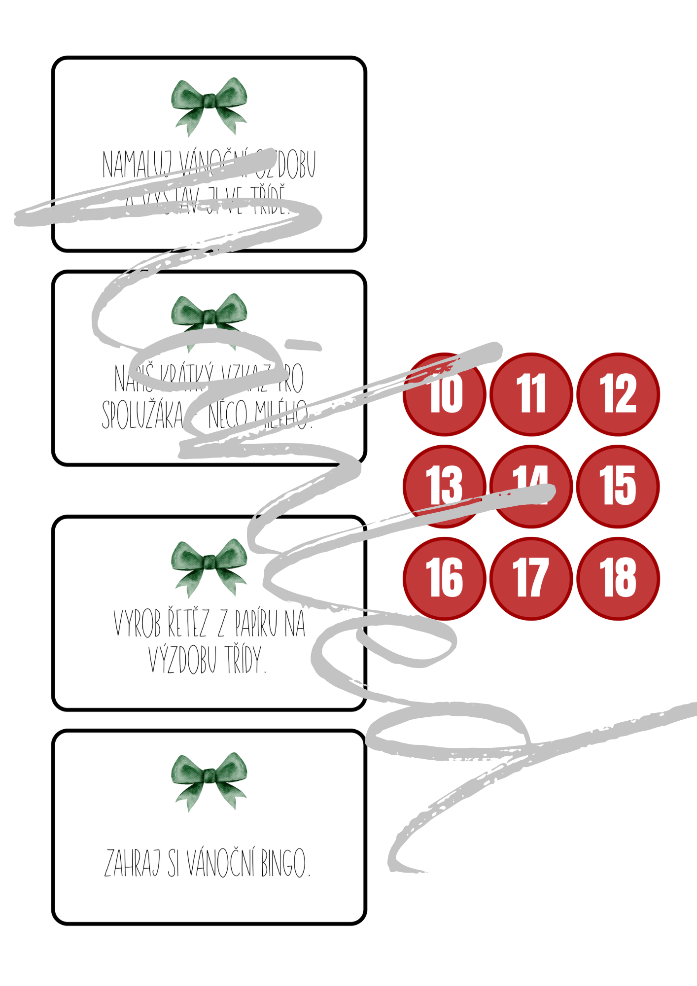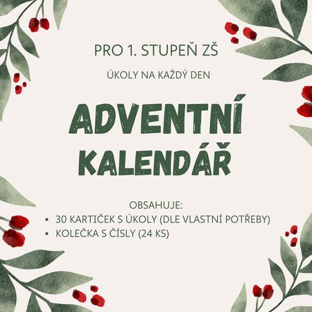 Objevte kouzlo adventu s originálním kalendářem plným hravých úkolů, který promění každý školní den v malý vánoční zázrak! Tento materiál je navržen tak, aby dětem na 1. stupni ZŠ přinesl radost, tvořivost, spolupráci a laskavost – přímo ve školní třídě.