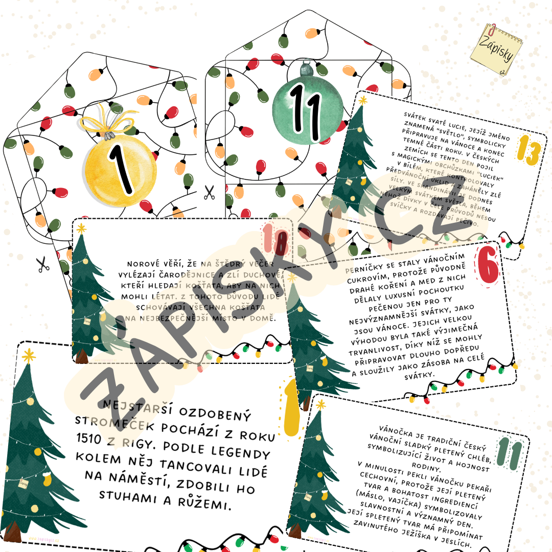 Každý den si společně otevřete jednu obálku — žáci si přečtou zajímavost, mohou o ní krátce diskutovat a užít si příjemné vánoční těšení.