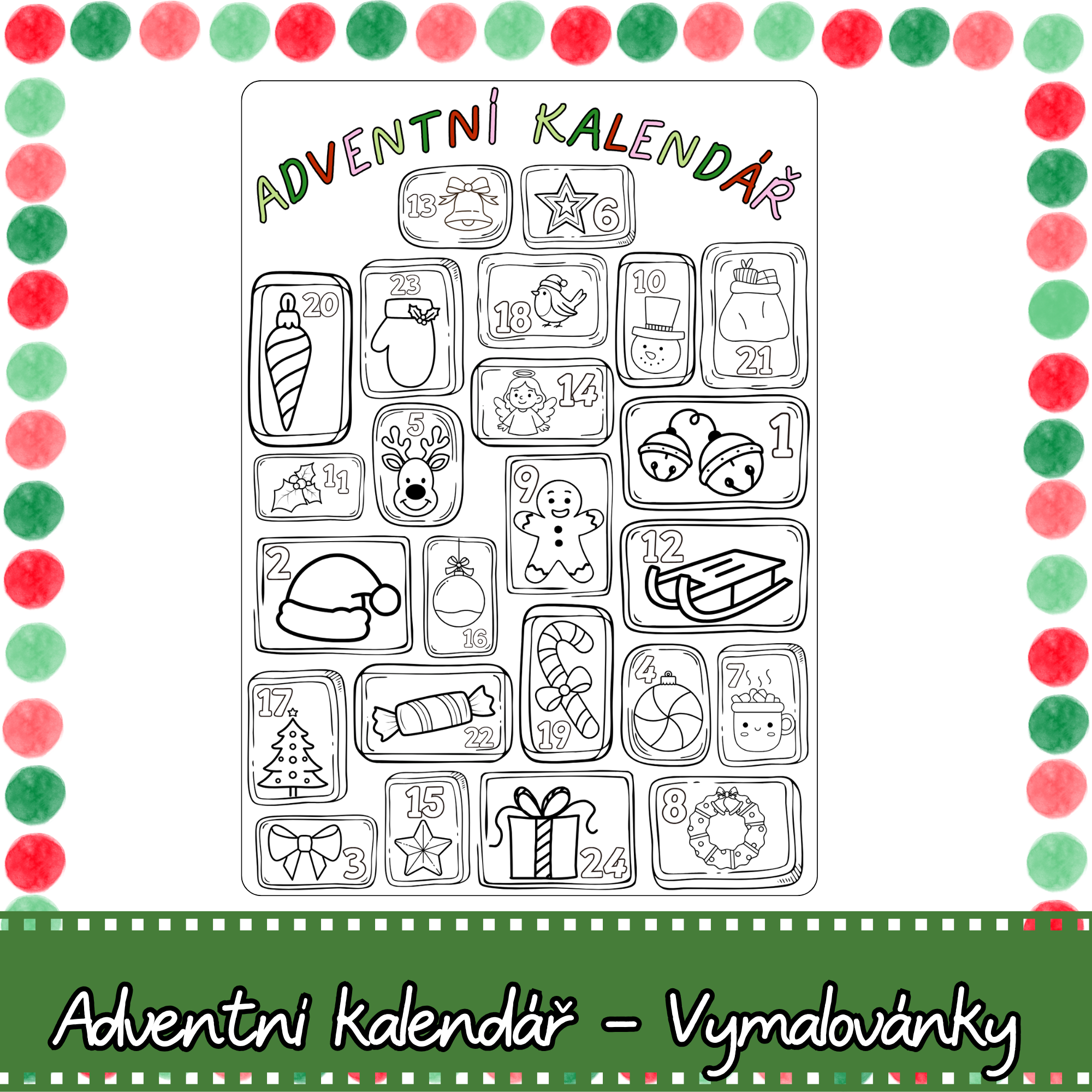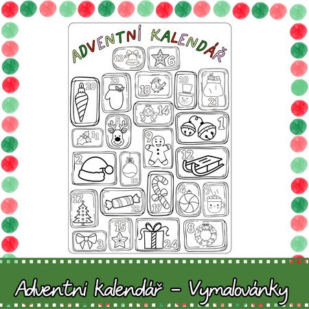 Adventní kalendář na jednu stránku s 24 omalovánkami.