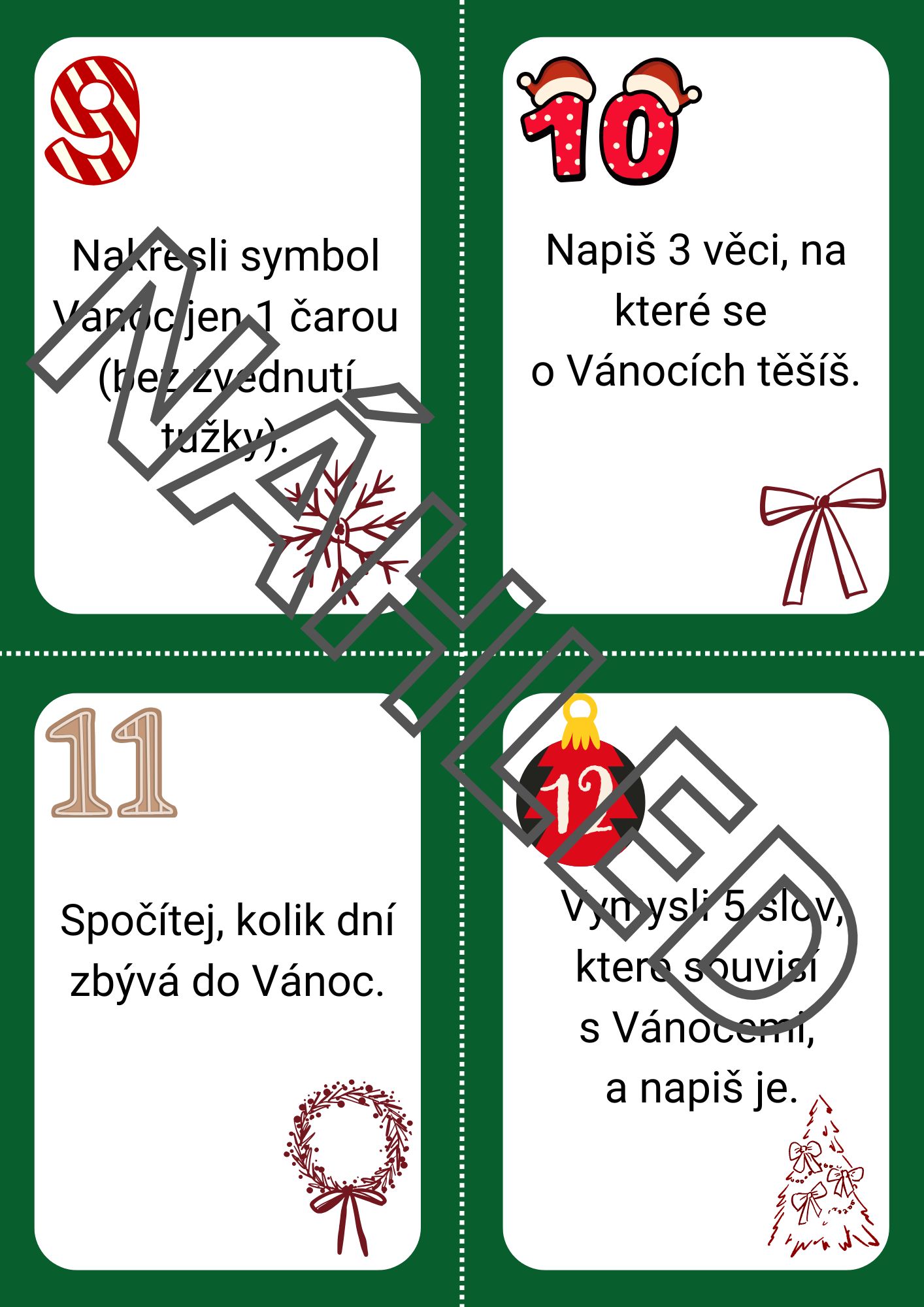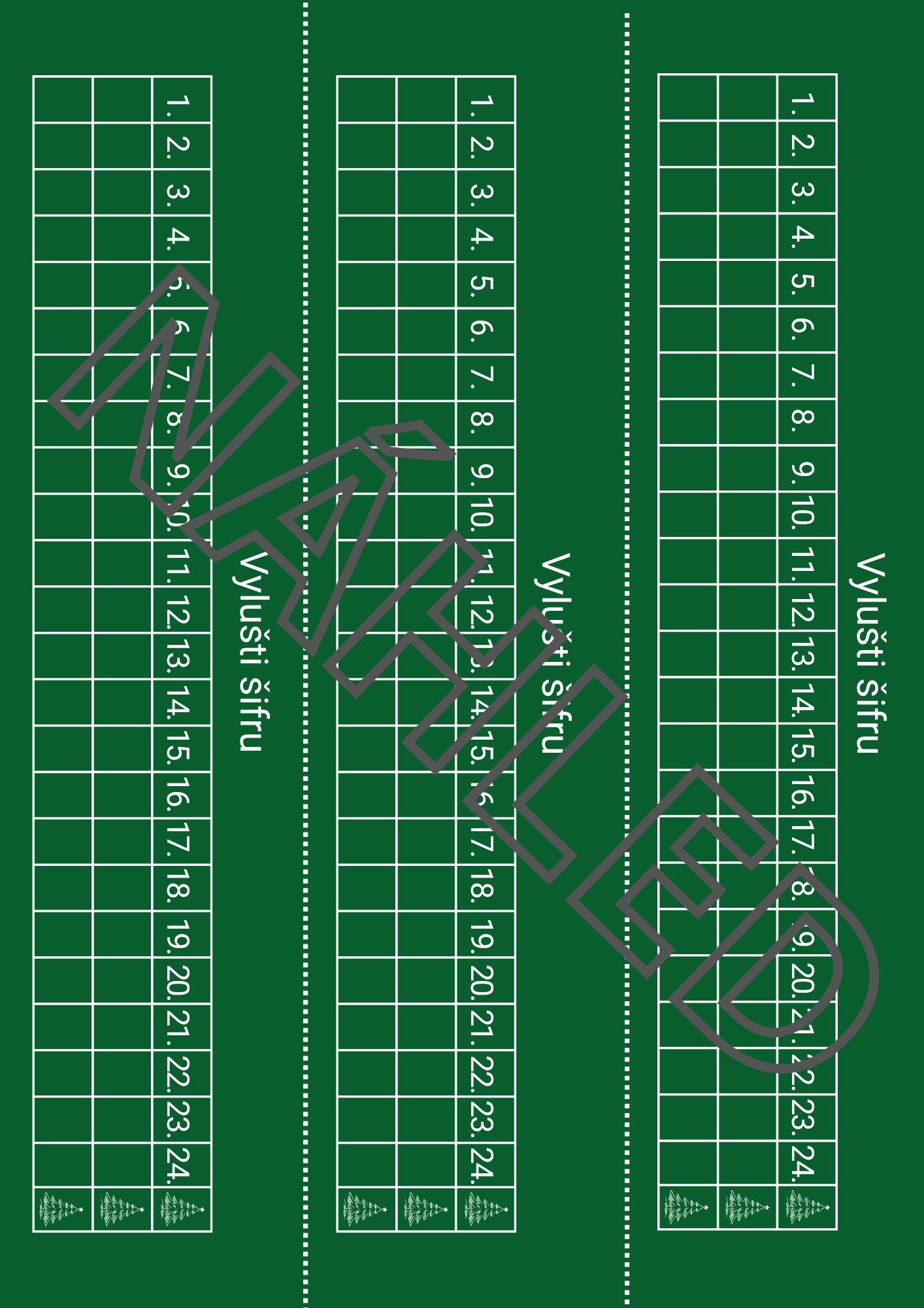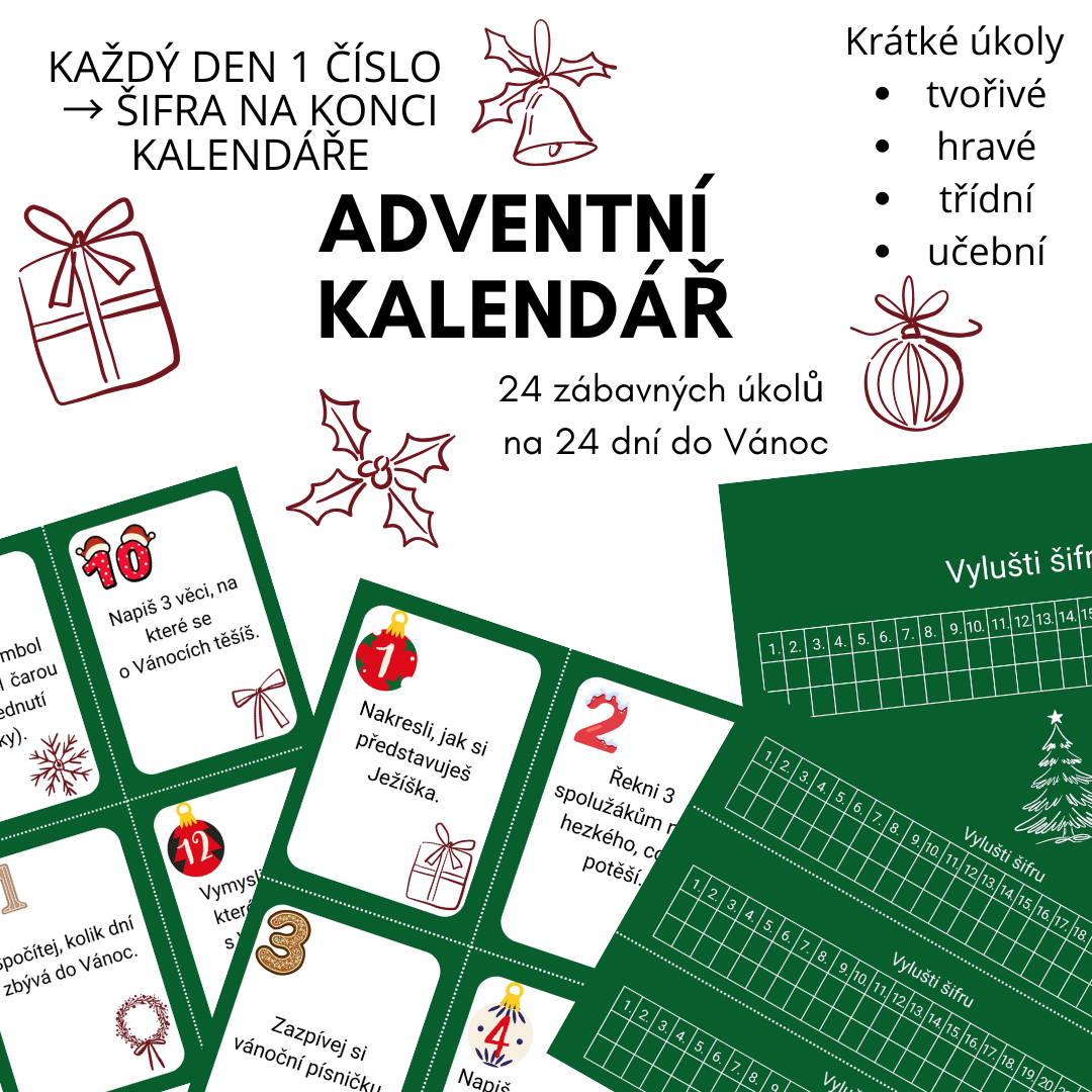 - Kartu s klíčem k šifře, kterou dá učitel na konci adventního kalendáře