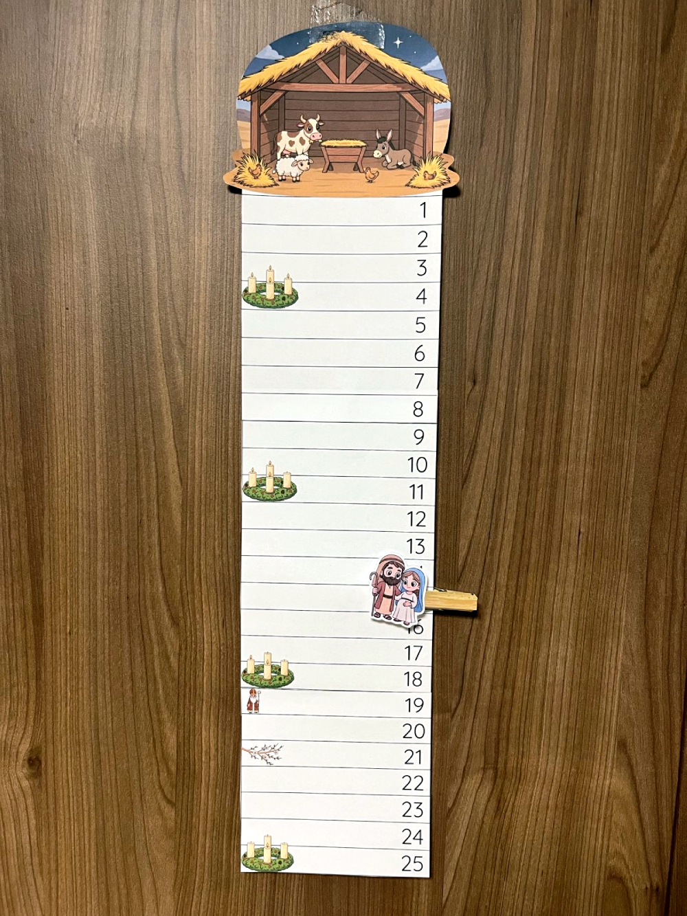 Soubor obsahuje 24 adventních karet s ilustracemi, kde každá karta představuje malý krok na cestě k narození Ježíše. Text je napsaný jednoduše, aby mu rozuměly předškolní děti, a zároveň je vhodný i pro začínající čtenáře, kteří si chtějí každý den procvičit čtení.