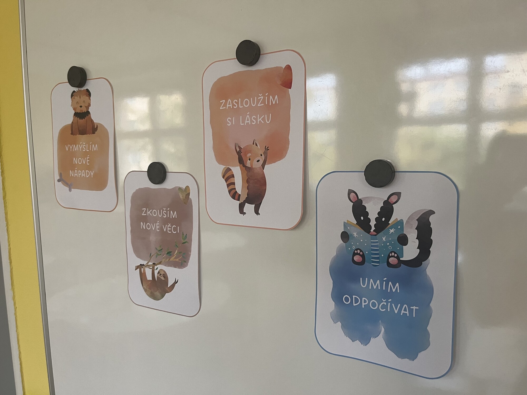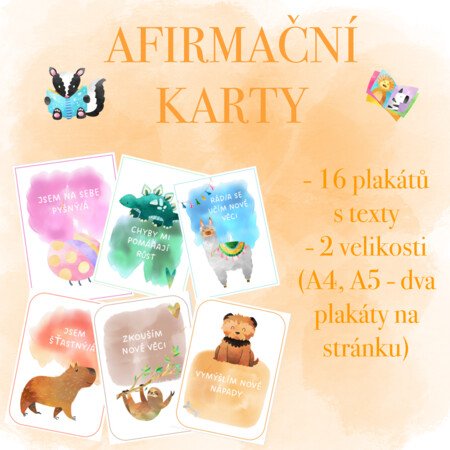 Tento soubor obsahuje 16 afirmačních obrázkových karet s krátkými texty. Karty slouží jako výzdoba do třídy a podpora mentálního zdraví dětí (pozitivní myšlení a budování sebevědomí).