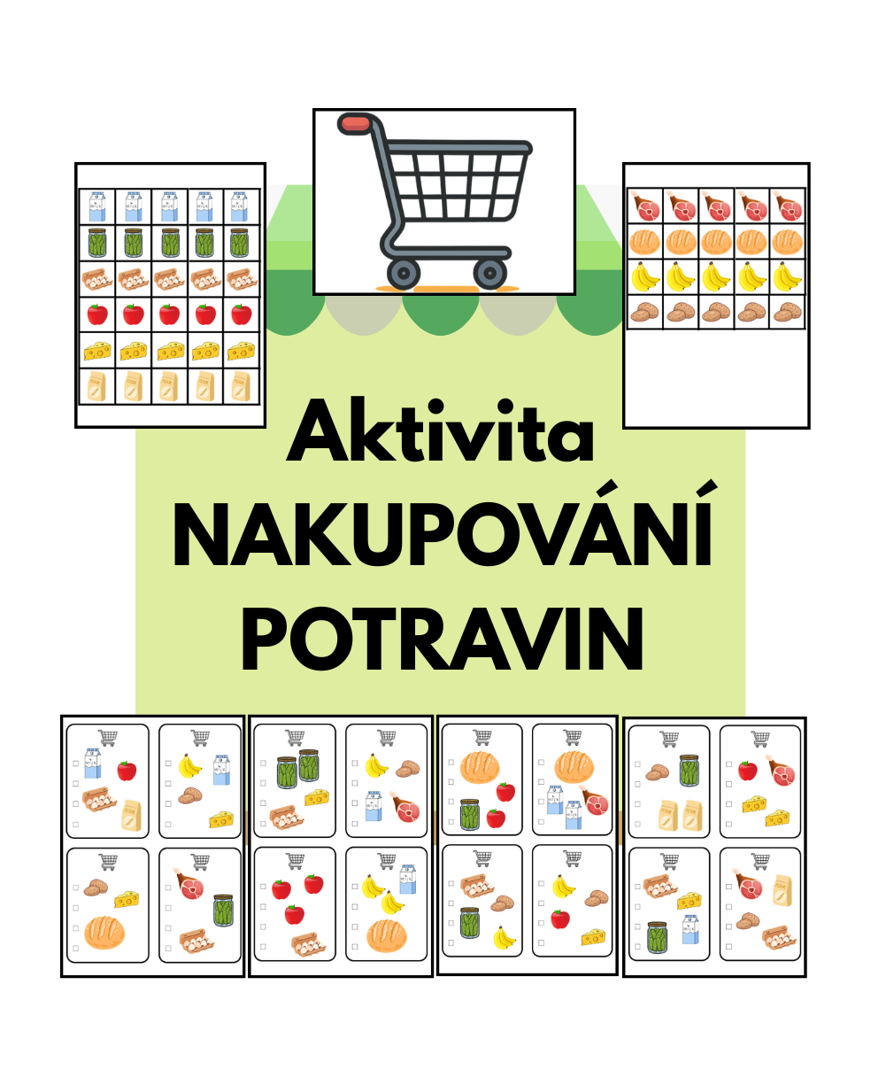 - nákupní seznamy (karty, podle kterých děti vybírají správné potraviny) (28 ks)
