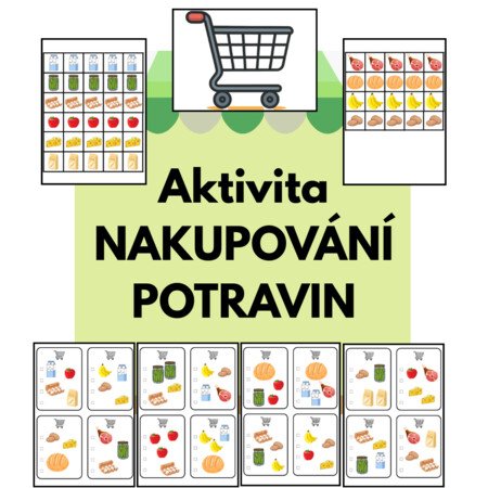- materiál je opakovaně využitelný (doporučuji zalaminovat), lze také na jednotlivé potraviny a vozík nalepit suchý zip