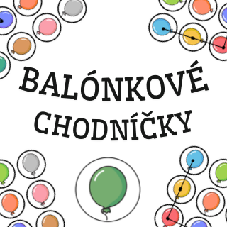 Děti se pohybují po balónkach podle „mapy“ – sledují vyznačenou trasu.