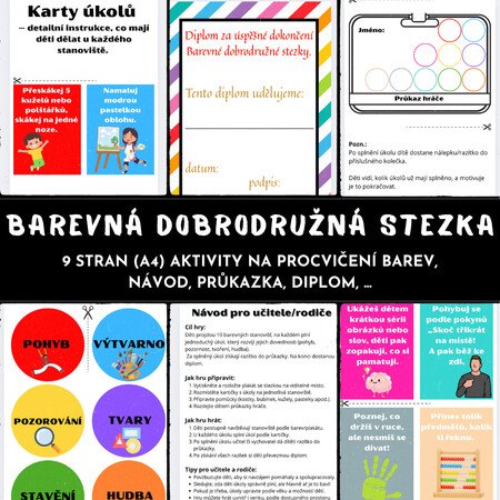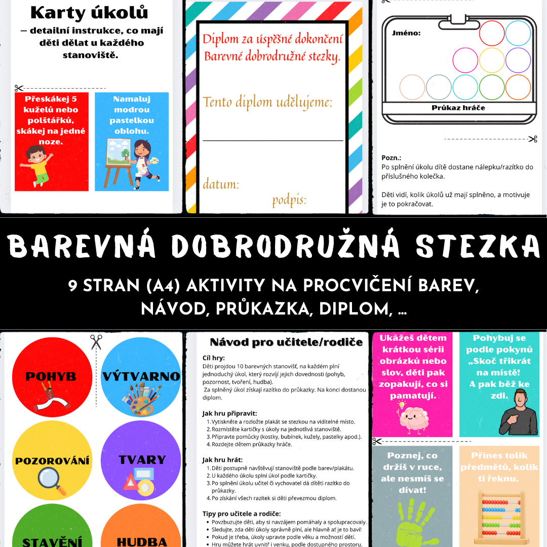 Hledáte super zábavnou a zároveň vzdělávací aktivitu pro děti v mateřské školce? 🤩 Barevná dobrodružná stezka je přesně to, co potřebujete! Je to sadu barevných, interaktivních a jednoduchých her, které pomáhají dětem rozvíjet paměť, pozorování 👀, sluch 👂, pohyb 🤸 a logické myšlení 🧠.