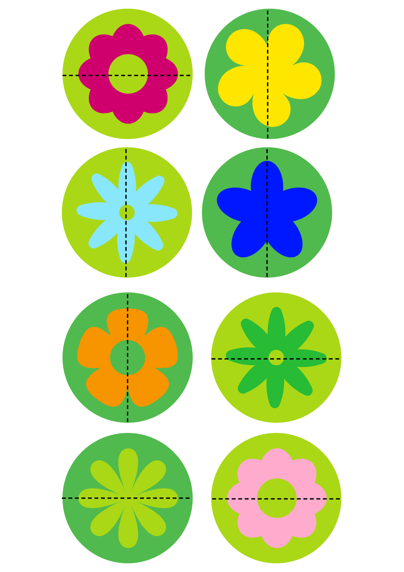 PŮLENÉ OBRÁZKY - Děti skládají obrázky barevných květů rozdělené na dvě části. Aktivita podporuje zrakovou analýzu a syntézu, logické myšlení, trpělivost a jemnou motoriku. (24 obrázků)
