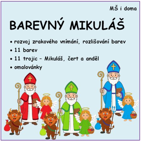 Barevný Mikuláš je vhodný pro malé i školkové děti - rozvíjí zrakovou percepci, rozlišování a vnímání barev.