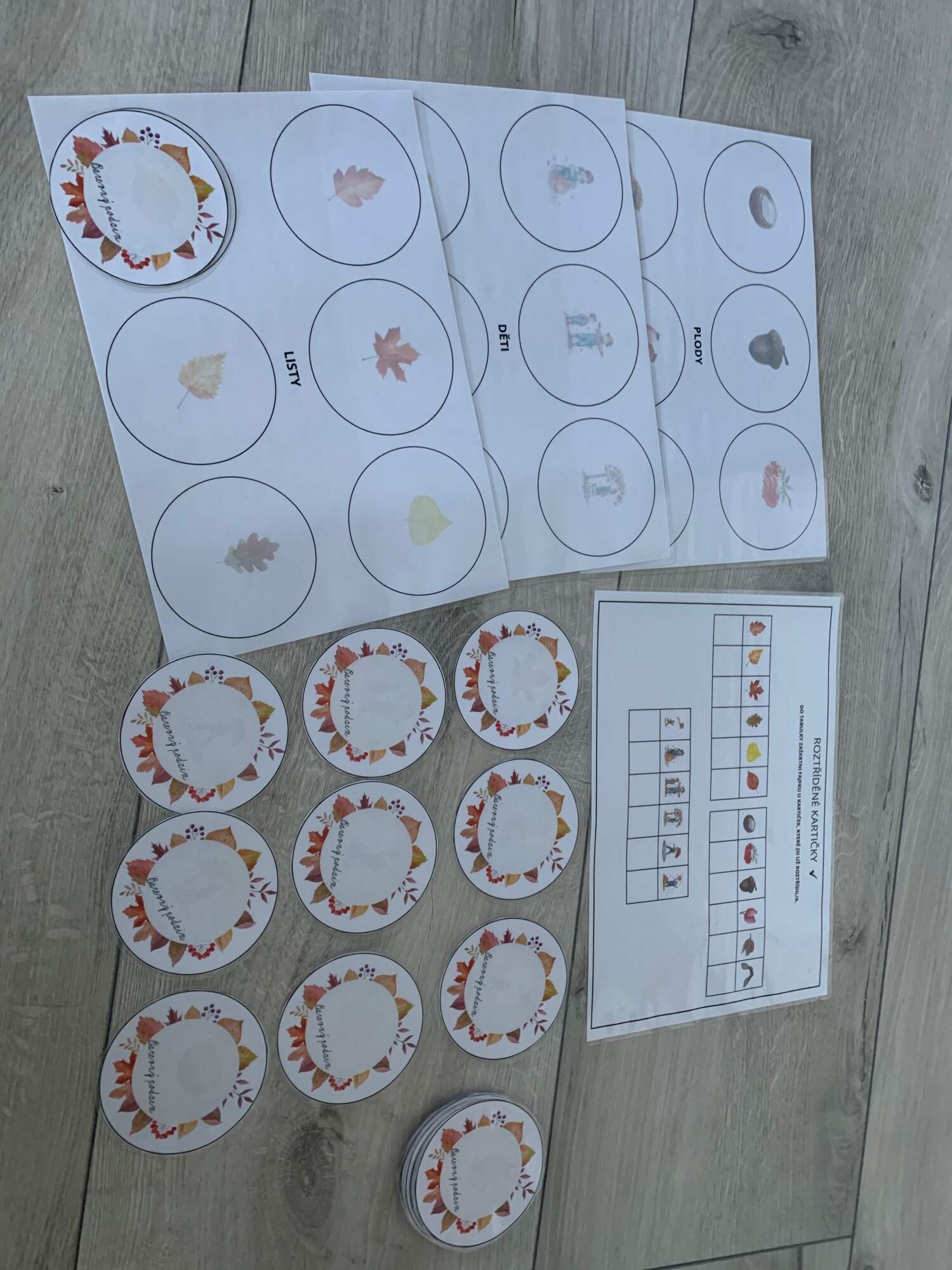 - 3 přiřazovací karty (DĚTI, PLODY, LISTY)