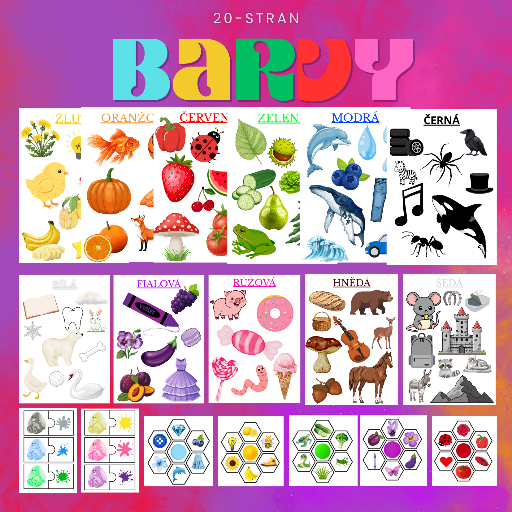 - Demonstrační karty: Velké karty slouží jako základ pro výuku. Povídejte si s dětmi o tom, co je na obrázcích a kde se s těmito barvami setkávají venku nebo doma.