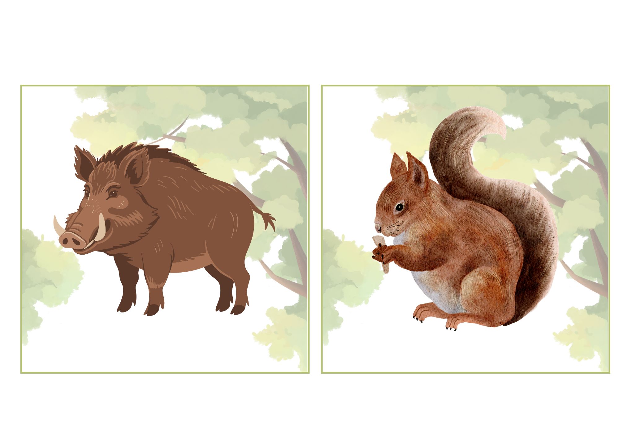Tento materiál obsahuje kartičky s tématem lesních zvířat – liška, ježek, srnka, zajíc a další obyvatelé lesa 🐿️🍂.