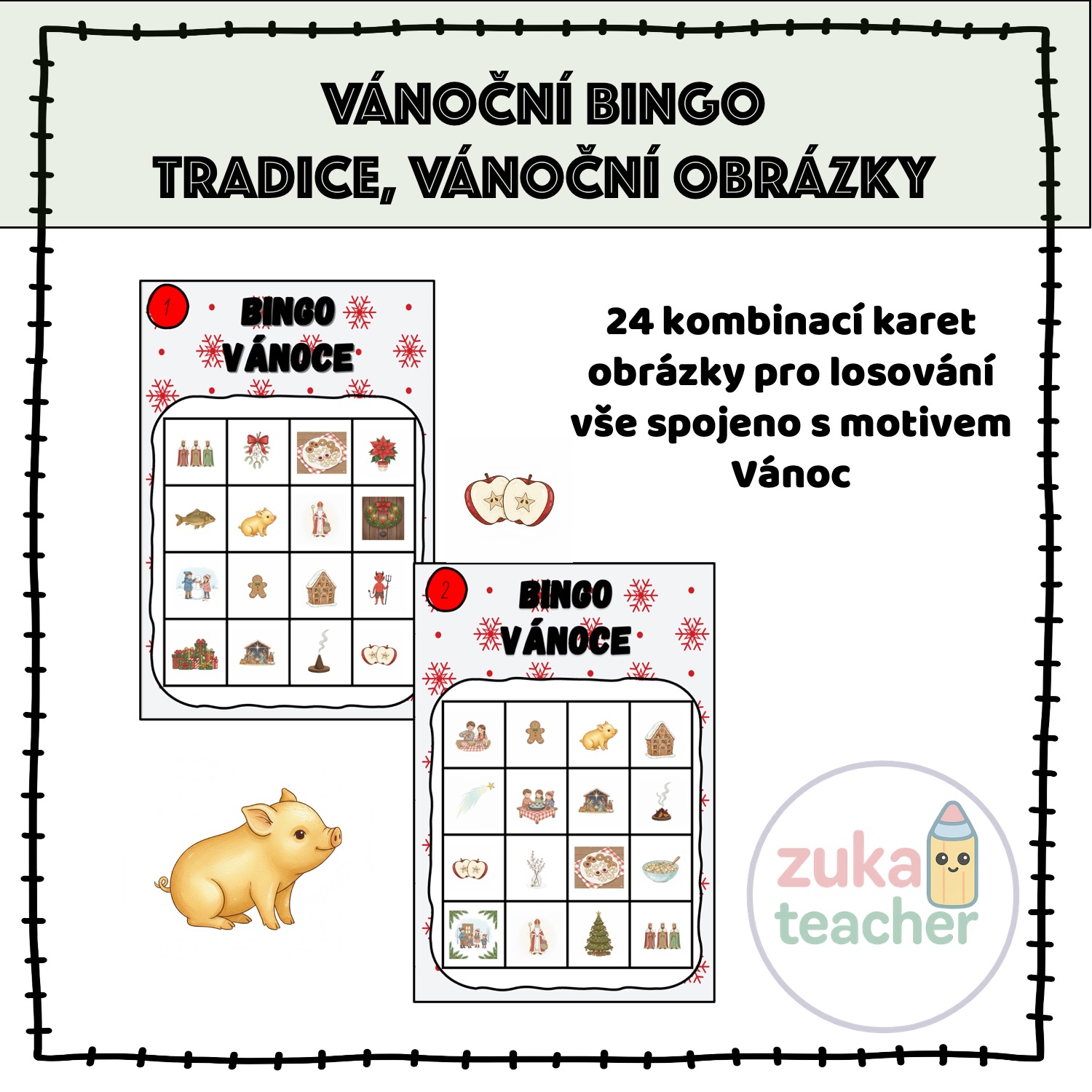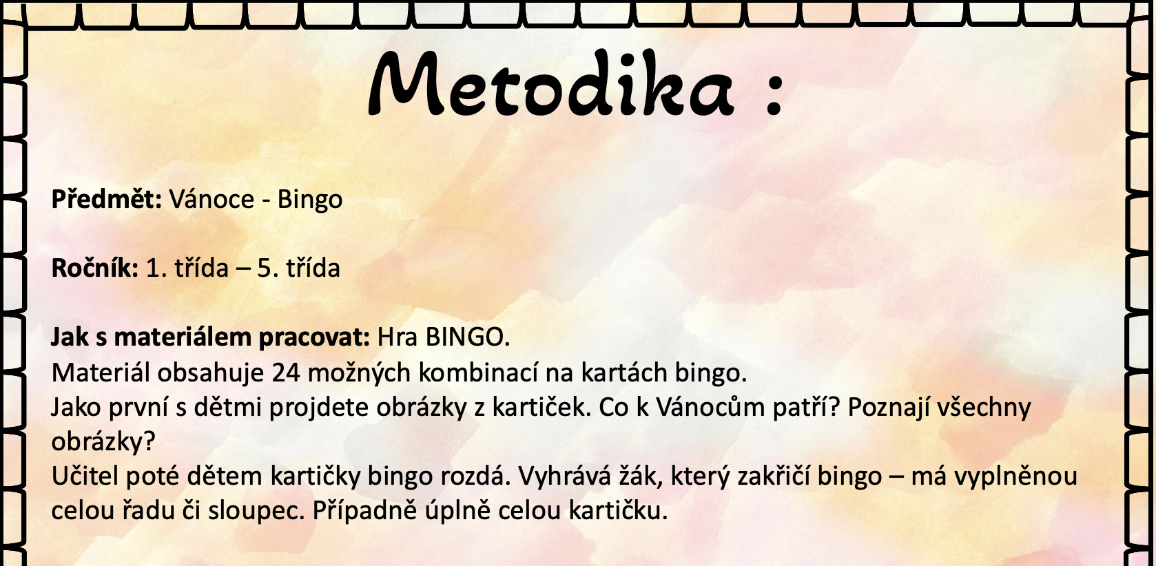 Materiál obsahuje 24 možných kombinací na kartách bingo.