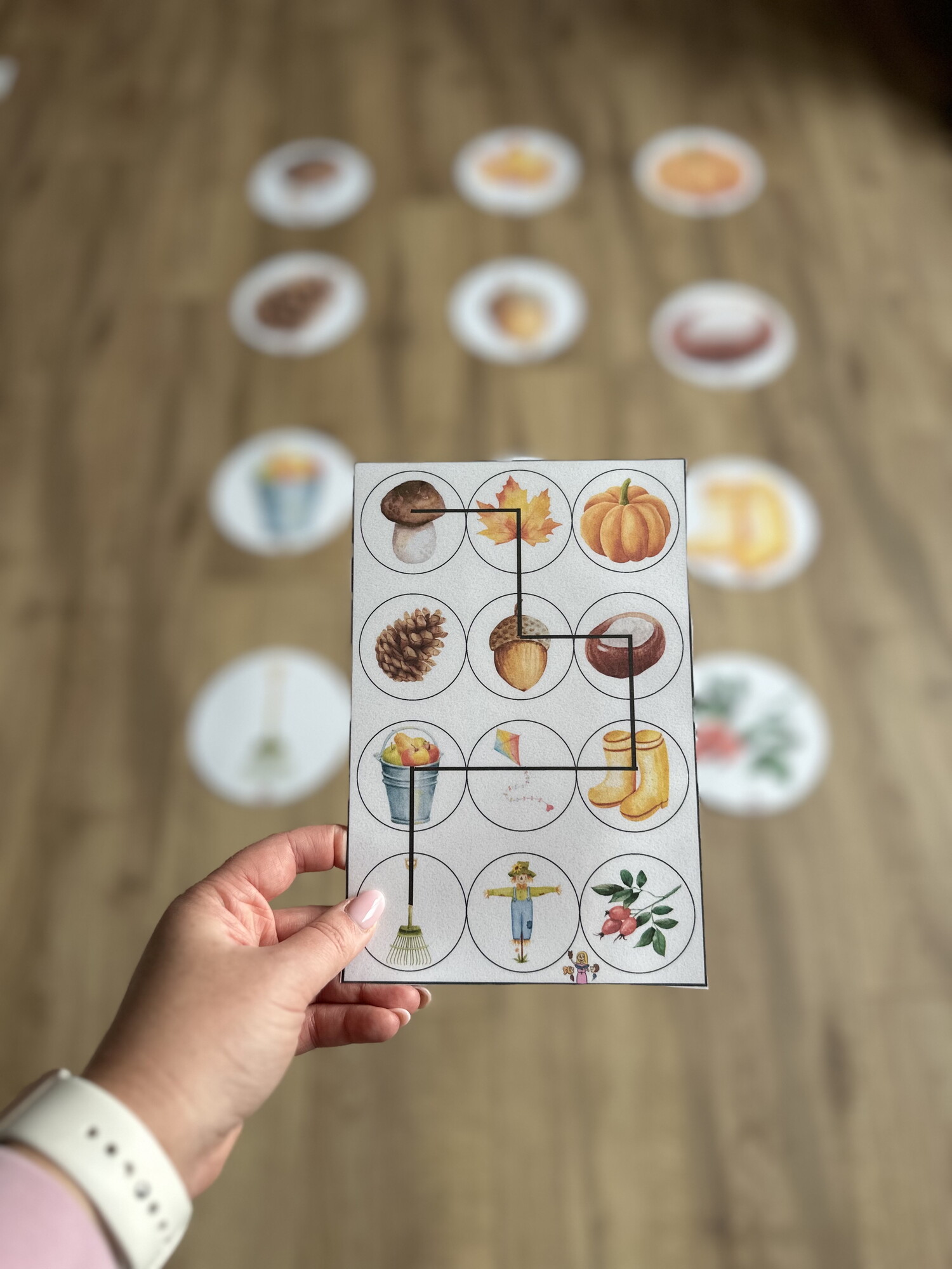Děti se vydávají po cestičkách plných obrázků a hledají správnou trasu podle předlohy. Během putování pojmenovávají obrázky, vytleskávají slabiky, popisují, co vidí, a vysvětlují, proč daný obrázek patří právě k určitému ročnímu období. Ostatní děti sledují, zda kamarád jde správně – zapojují se tak do hry i jako pozorovatelé.