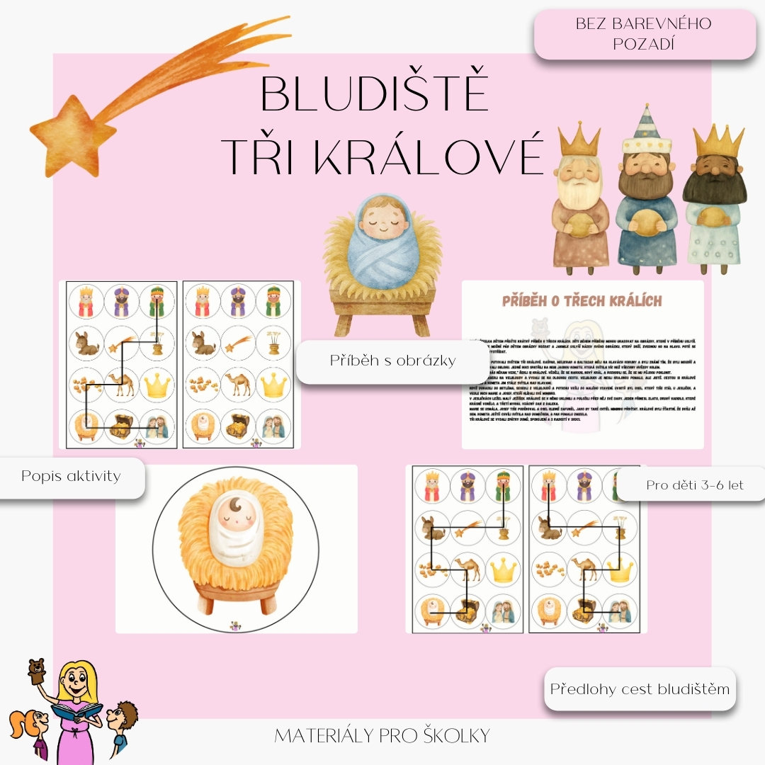 Objevujte kouzlo svátku Tří králů hravou a dětem srozumitelnou formou! Tento interaktivní materiál je navržen tak, aby děti nejen bavil, ale zároveň rozvíjel jejich pozornost, slovní zásobu, prelogické myšlení a orientaci v prostoru.