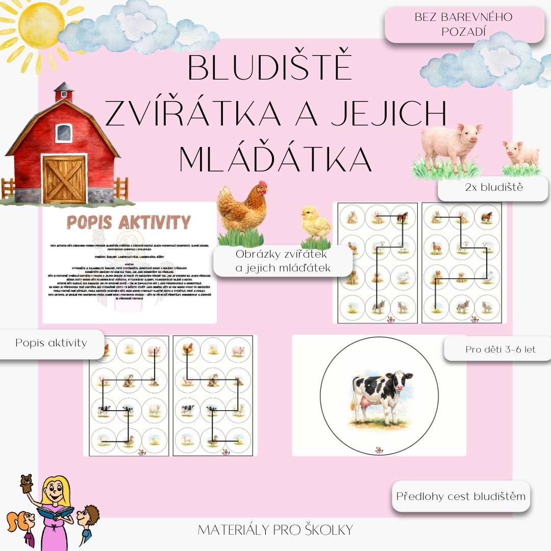🐾 Bludiště: Zvířátka a jejich mláďátka (3–6 let)
