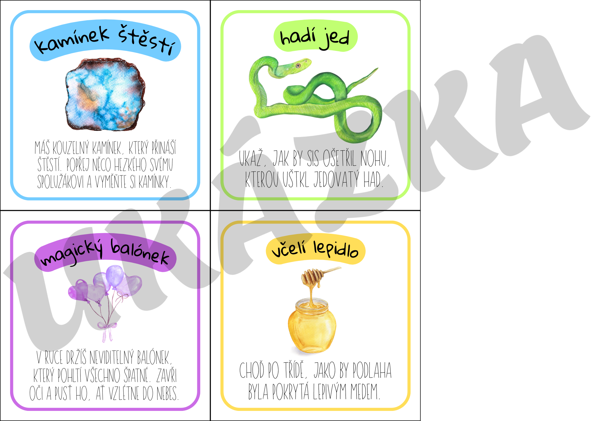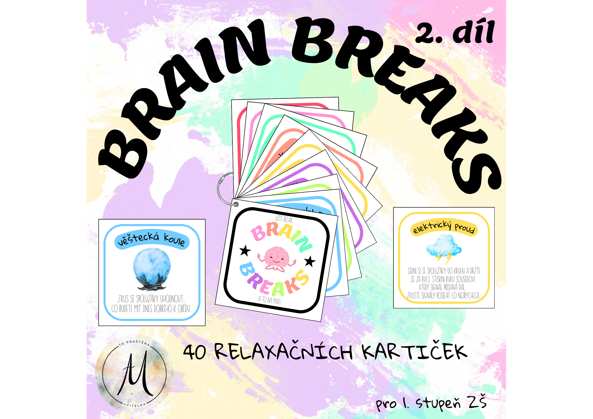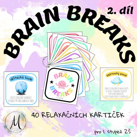 Přijde Vám, že již žáci nevnímají to, co probíráte? Působí unaveně? Kupte si těchto 40 relaxačních kartiček, vytiskněte, zalaminujte a vystříhejte a na chvíli se s žáky odreagujte hravými úkoly. Jedná se o rozšíření 1. sady Brain Breaks.