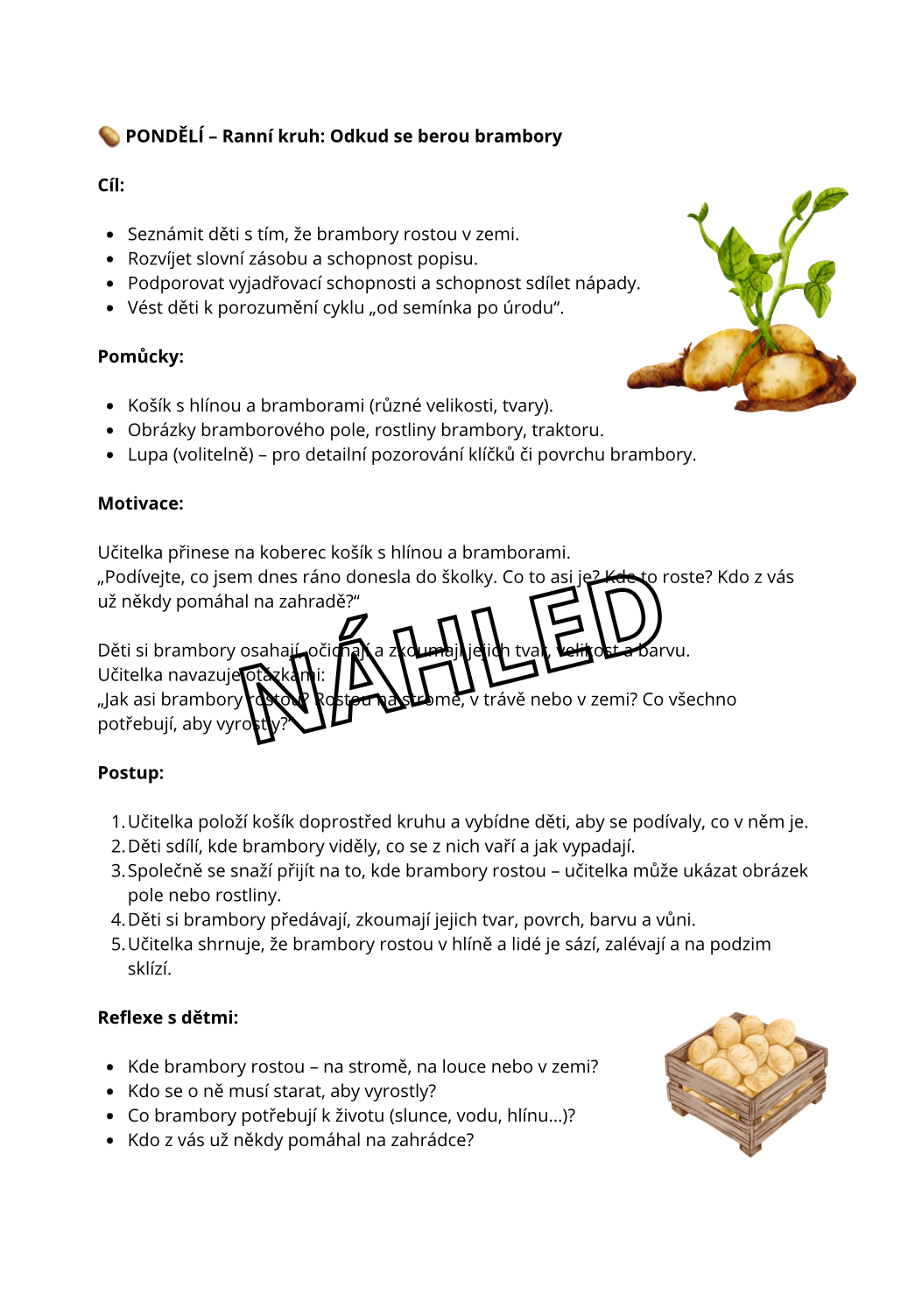 🥔 Týdenní projekt do MŠ: BRAMBORY🚜🌾