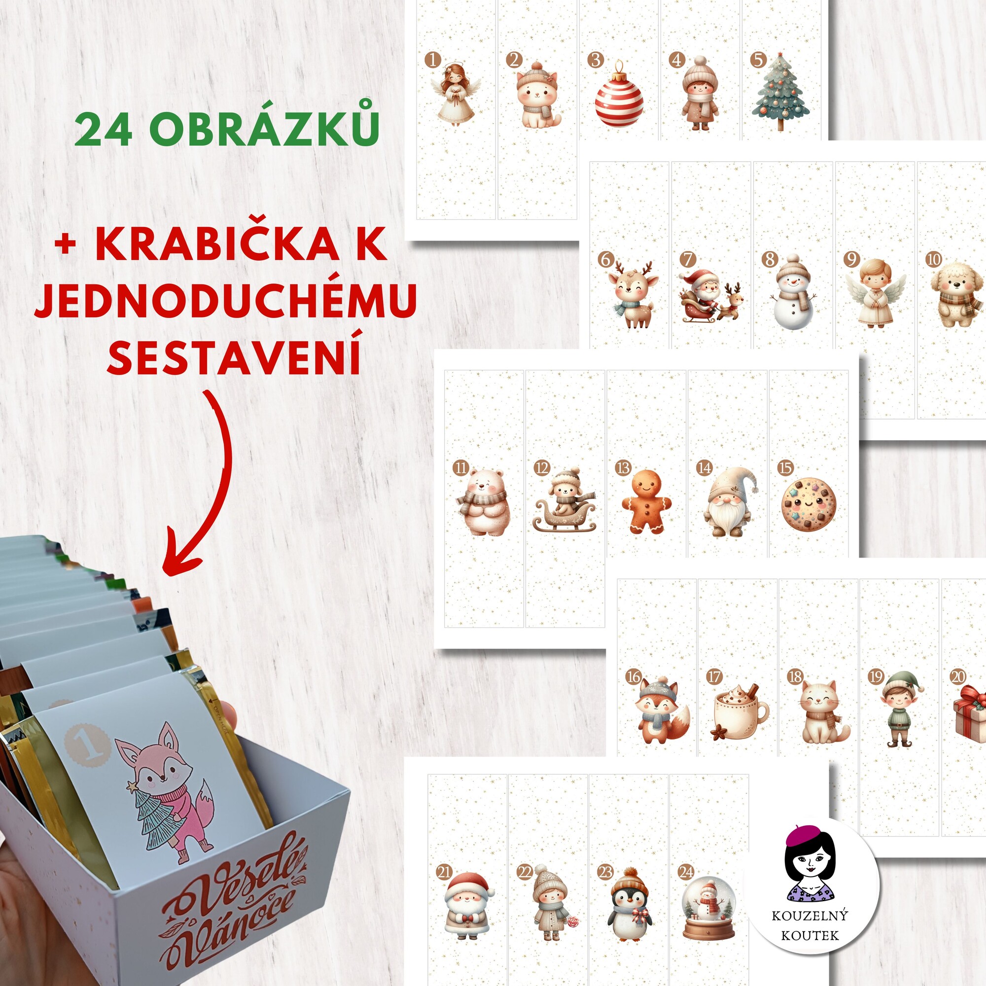 Včetně krabičky na všech 24 čajů - zde doporučuji tisk na papír silnější gramáže - 220 gms a výše.