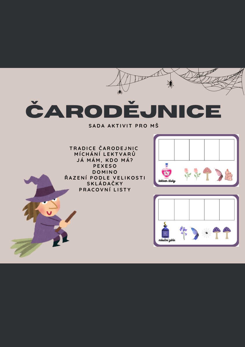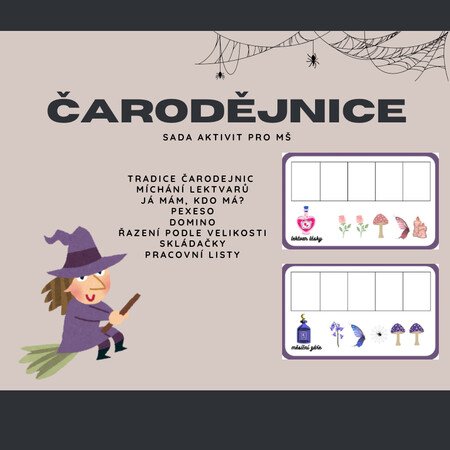 Tento materiál obsahuje 8 aktivit, které Vám mohou doplnit Váš tematický blok čarodějnic v mateřské škole.
