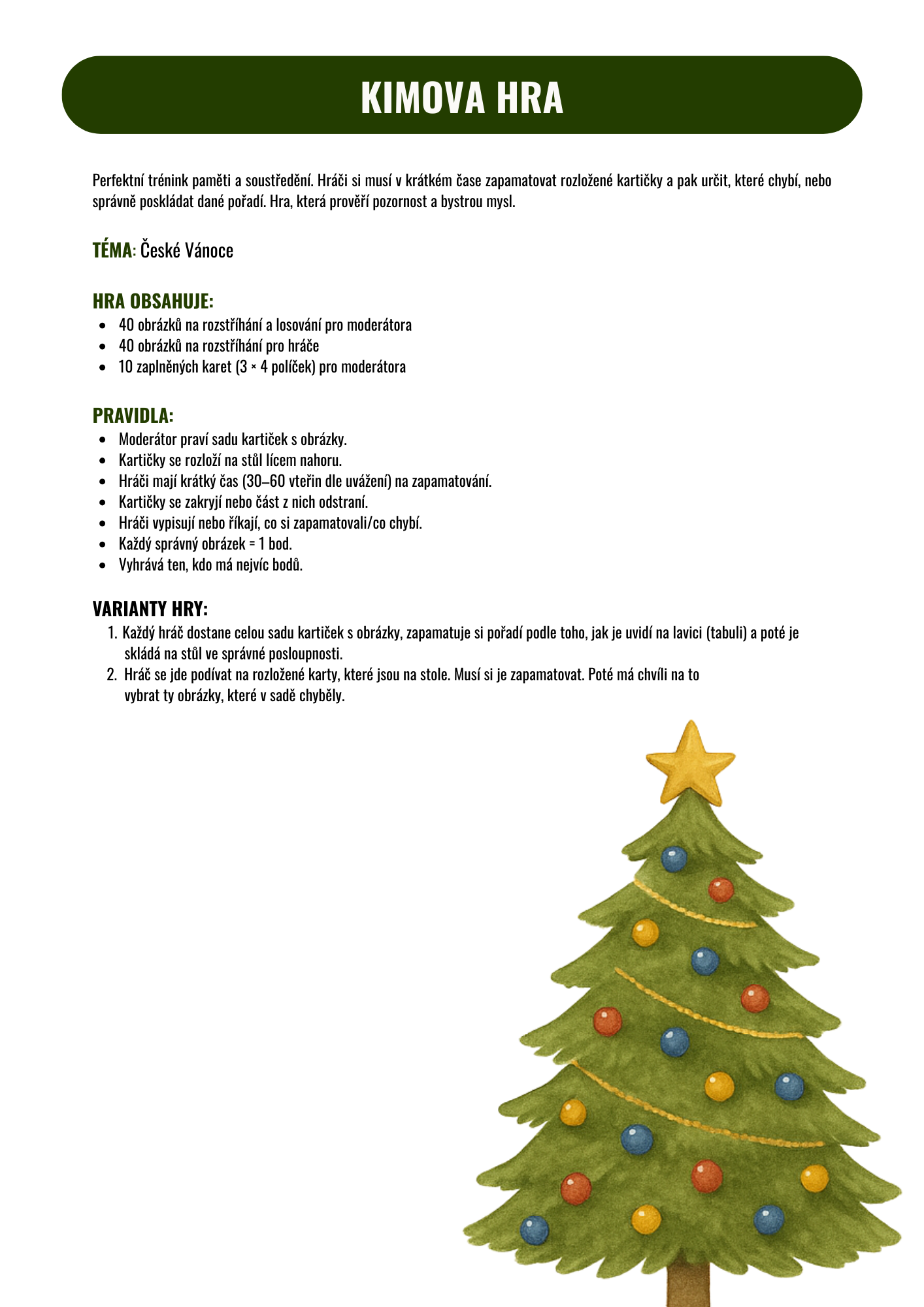 Perfektní trénink paměti a soustředění. Hráči si musí v krátkém čase zapamatovat rozložené kartičky a pak určit, které chybí, nebo správně poskládat dané pořadí. Hra, která prověří pozornost a bystrou mysl.