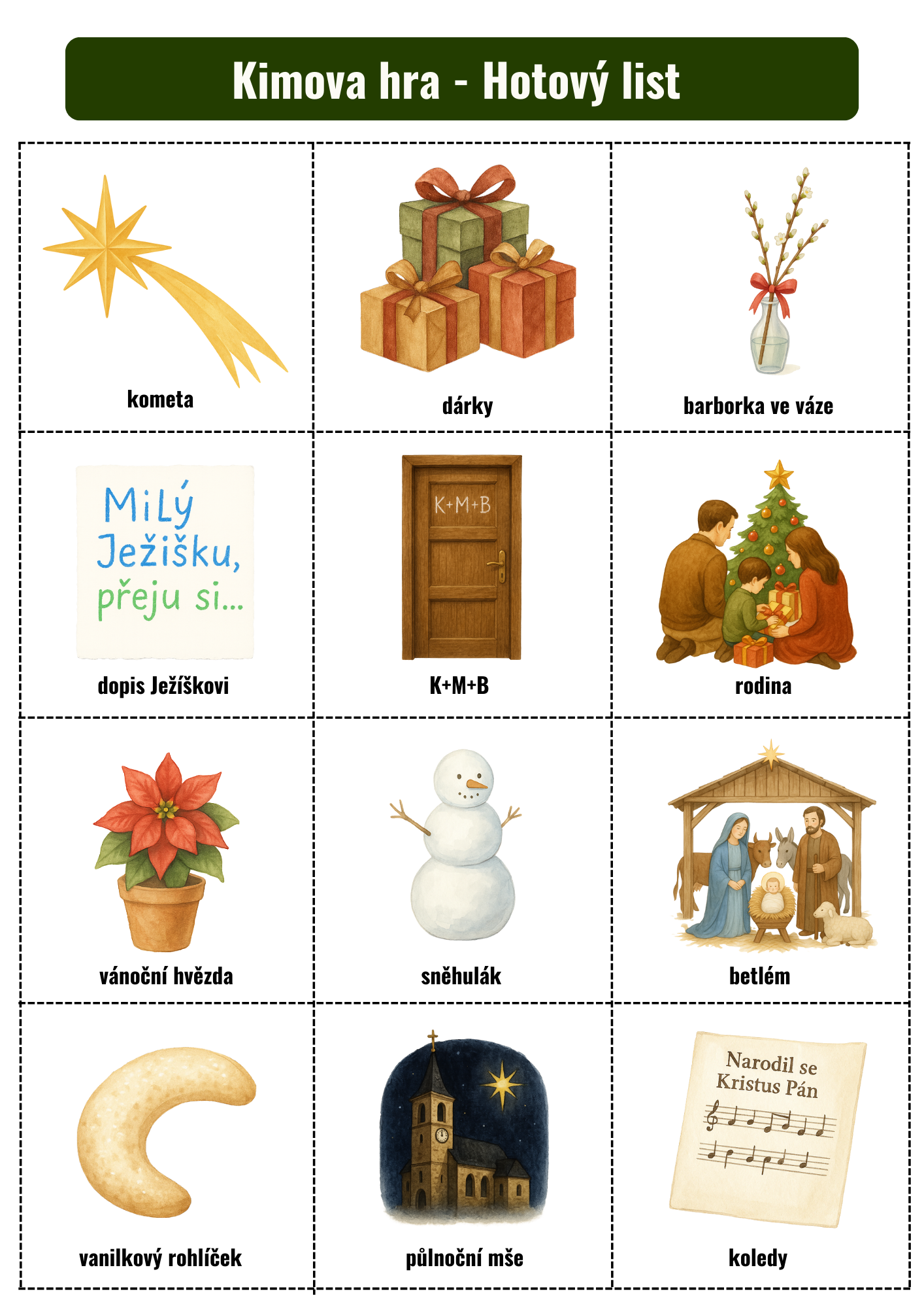10 zaplněných karet (3 × 4 políček) pro moderátora