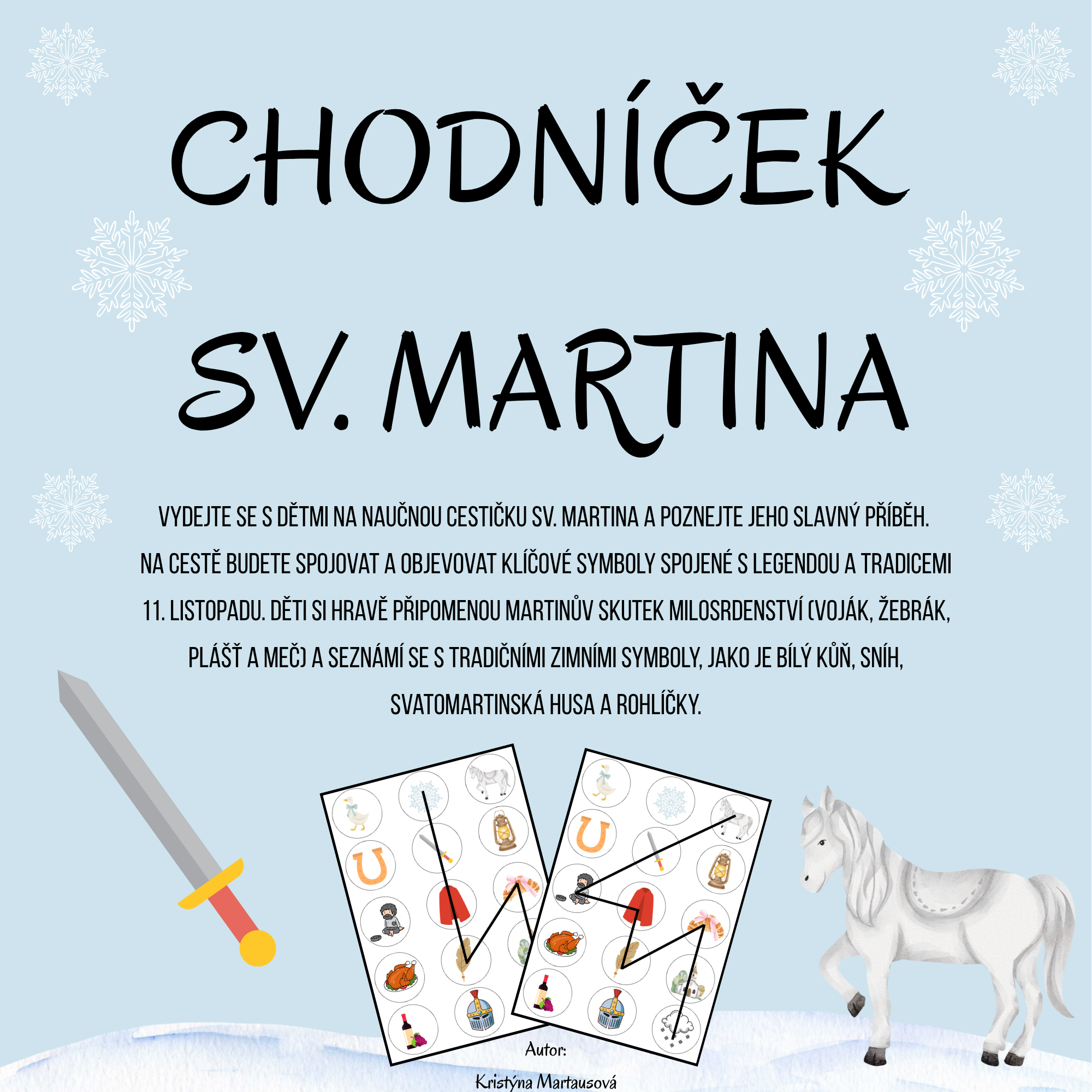 Vydejte se s dětmi na naučnou cestičku sv. Martina a poznejte jeho slavný příběh. Na cestě budete objevovat klíčové symboly spojené s legendou a tradicemi 11. listopadu. Děti si hravě připomenou Martinův skutek milosrdenství(voják, žebrák, plášť a meč) a seznámí se s tradičními zimními symboly, jako je bílý kůň, sníh, svatomartinská husa a rohlíčky.
