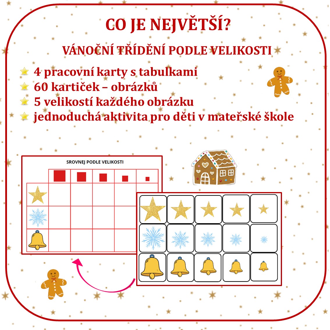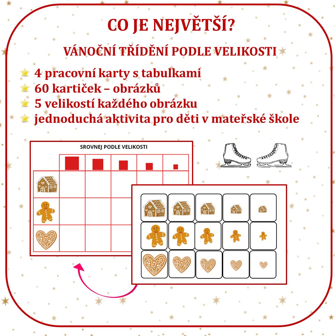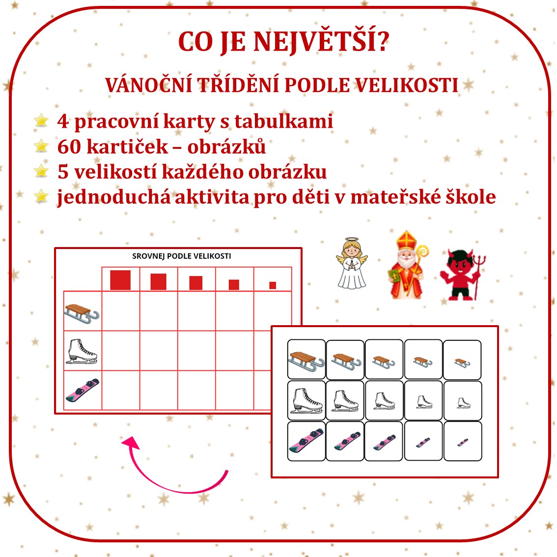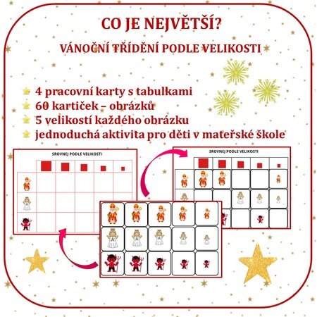• 4 pracovní karty s tabulkami pro řazení obrázků podle velikosti