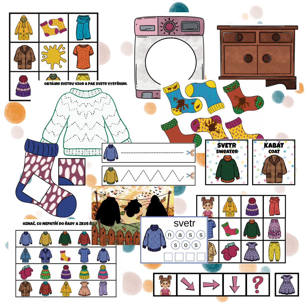 Tento tematický materiál dětem hravou formou přibližuje svět oblékání, barev, tvarů a každodenních činností. Obsahuje rozmanité aktivity, pracovní listy i hry, které rozvíjejí logické myšlení, zrakové vnímání, jemnou motoriku a slovní zásobu.