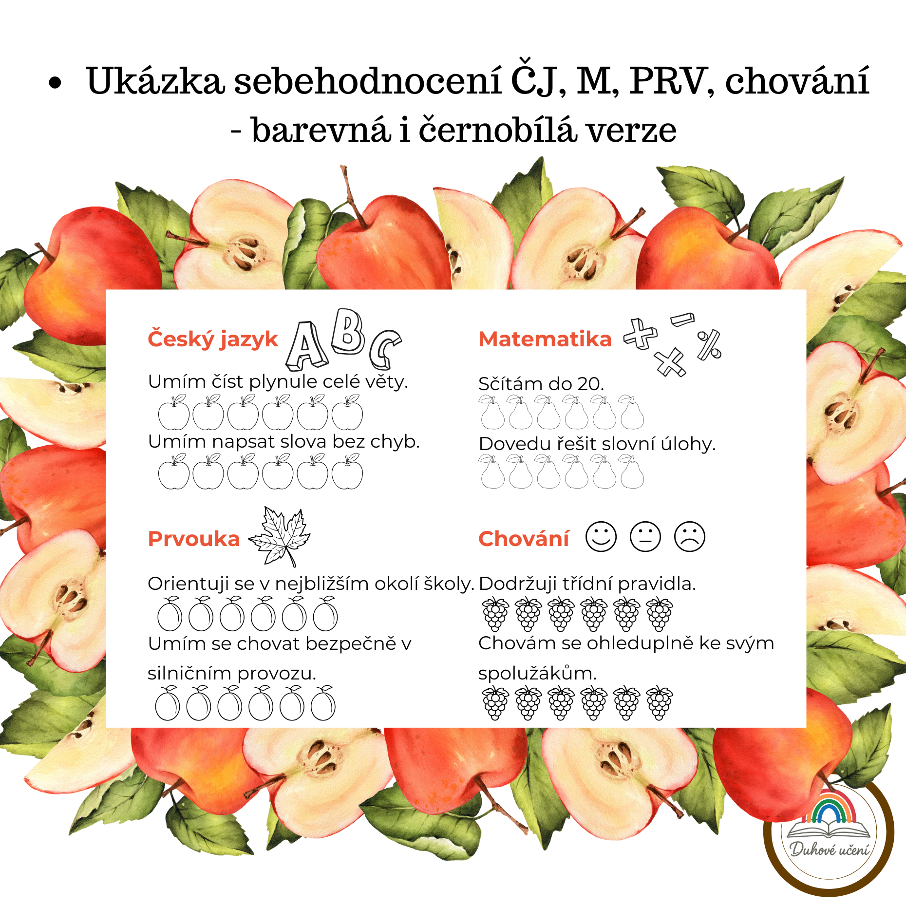Na první straně sebehodnocení žák vybarvuje ovocné plody podle toho, do jaké míry mu připadá, že danou dovednost zvládl.