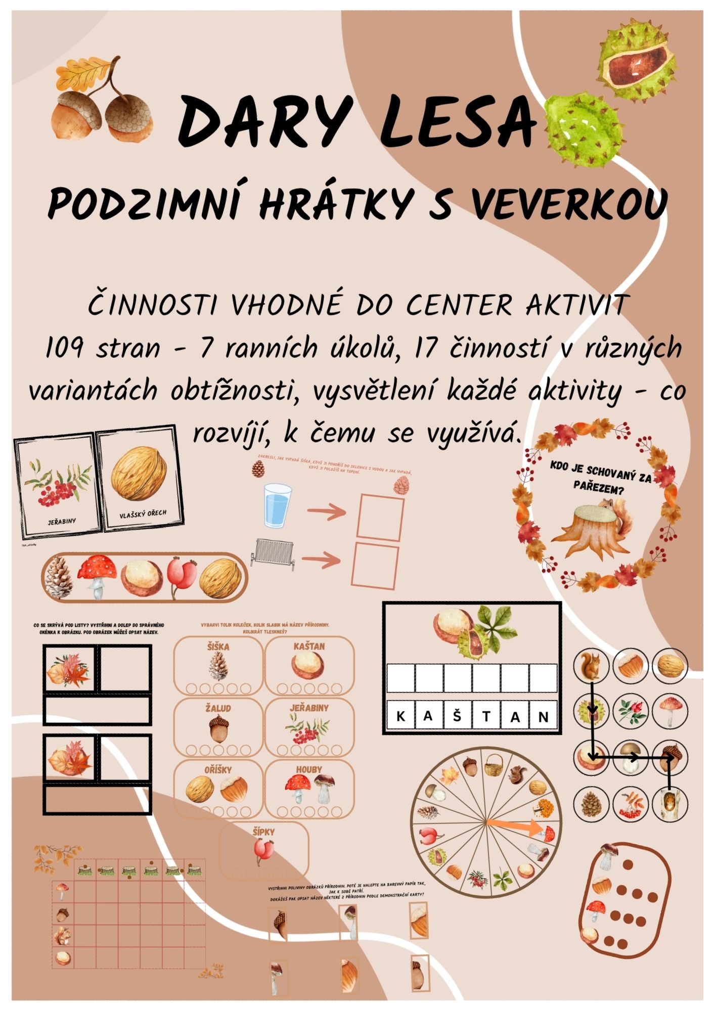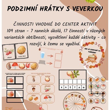 109 stran - 7 ranních úkolů, 17 činností v různých variantách obtížnosti, vysvětlení každé aktivity - co rozvíjí, k čemu se využívá.