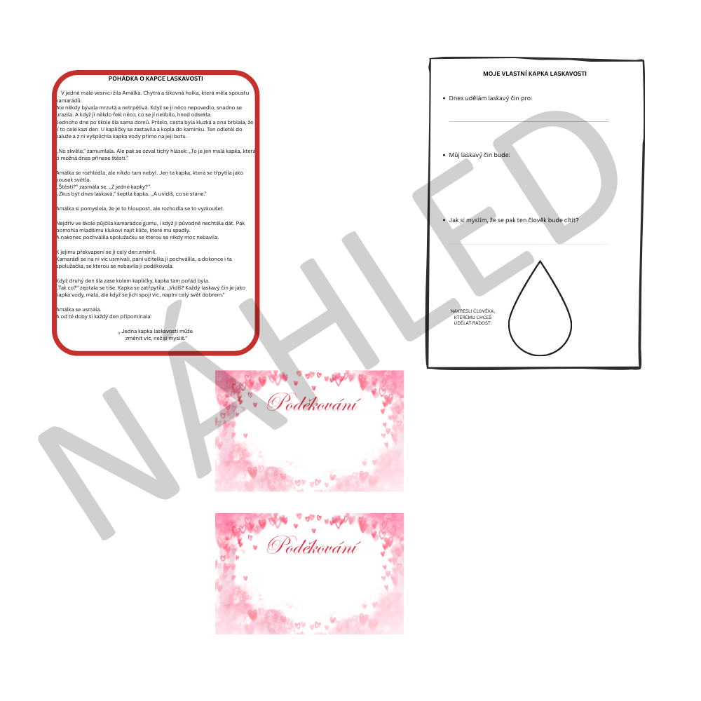 ✅ Tyto aktivity můžete využít během Dne laskavosti jako společný program ve třídě nebo družině. Prostřednictvím pohádky, her a tvoření si děti uvědomí, že laskavost může mít mnoho podob - od úsměvu, přes pomoc kamarádovi, až po poděkování lidem kolem nás.