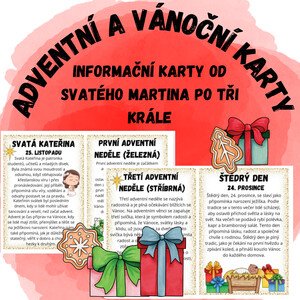 Materiál obsahuje karty k adventnímu času. Obsahuje všechny významné dny od svátku svaté Kateřiny až po tři krále