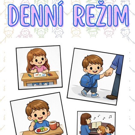 Soubor obsahuje 38 přehledných demonstračních karet, které dětem pomáhají orientovat se v průběhu dne a podporují samostatnost i jistotu v každodenních činnostech. 💛