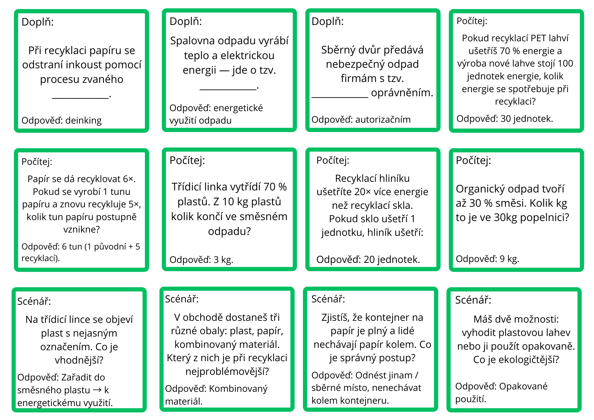 - Kartičky můžete snadno diferencovat podle obtížnosti – mladším žákům dávat lehčí sady, starším těžší.