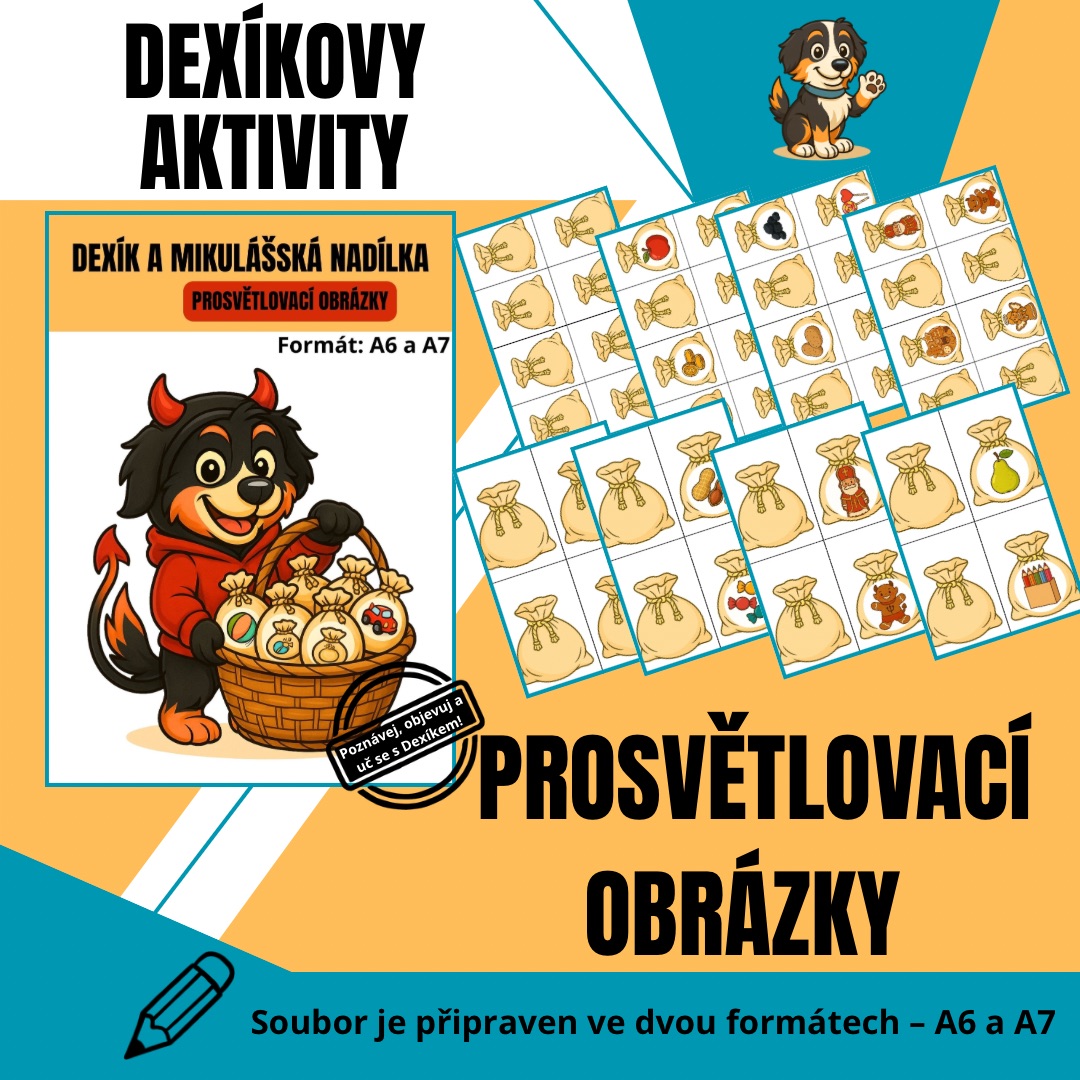 🎅 Dexík a mikulášská nadílka – Prosvětlovací obrázky ✨