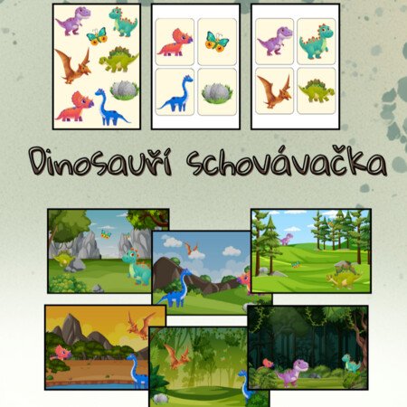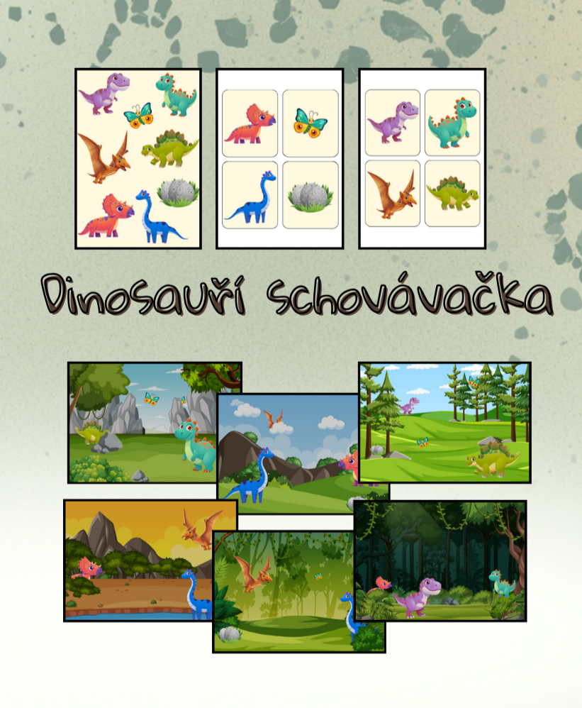 - 8 kartiček s dinosaury (které děti mají za úkol hledat)
