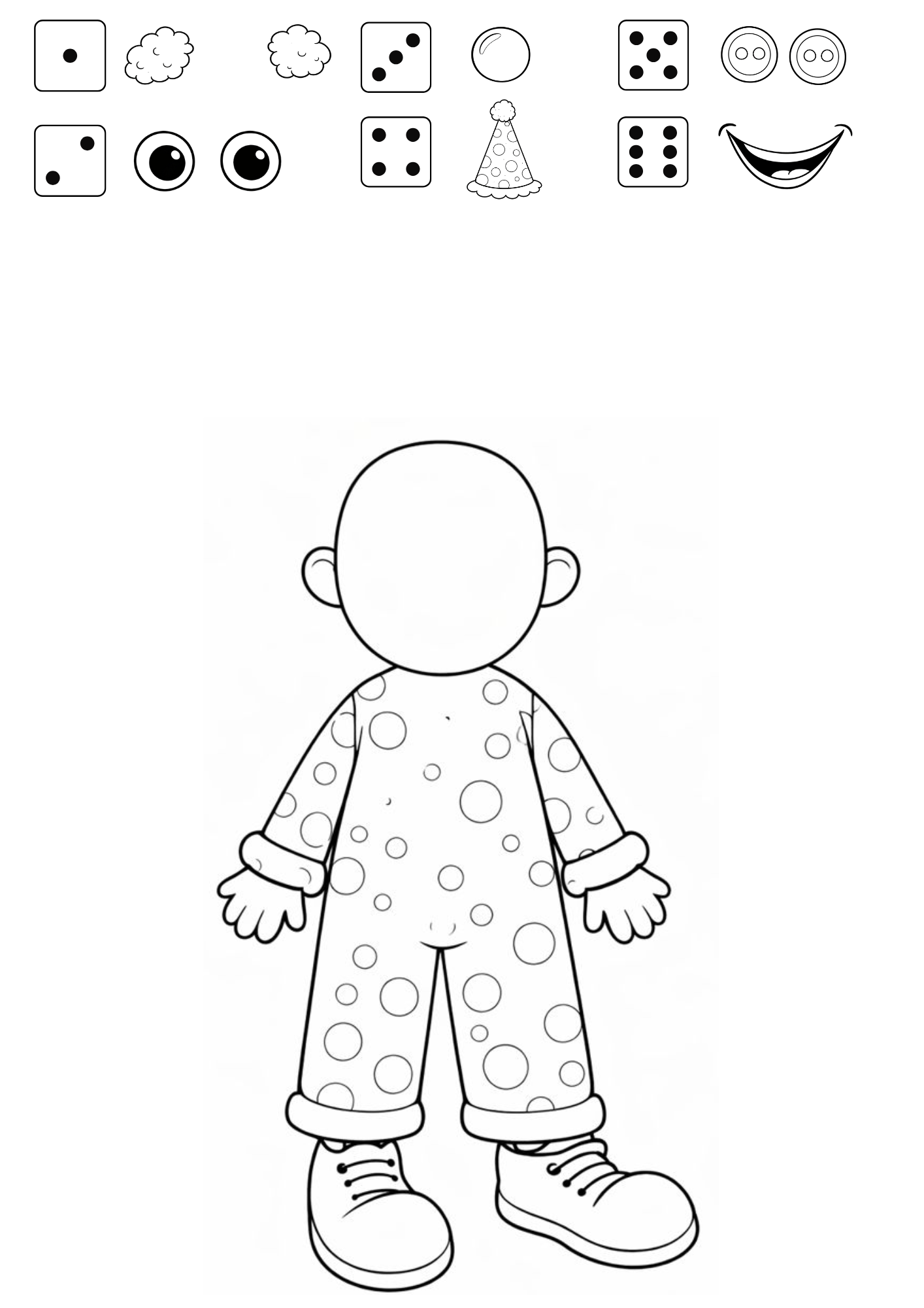 Děti hází kostkou. Podle toho, co jim padne, postupně dokreslují klauna.