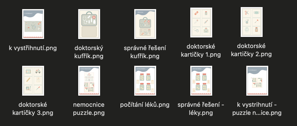 - hledání dvojic (např. lékař – stetoskop, pacient – léky),
