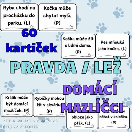 •60 kartiček s větami o domácích zvířatech