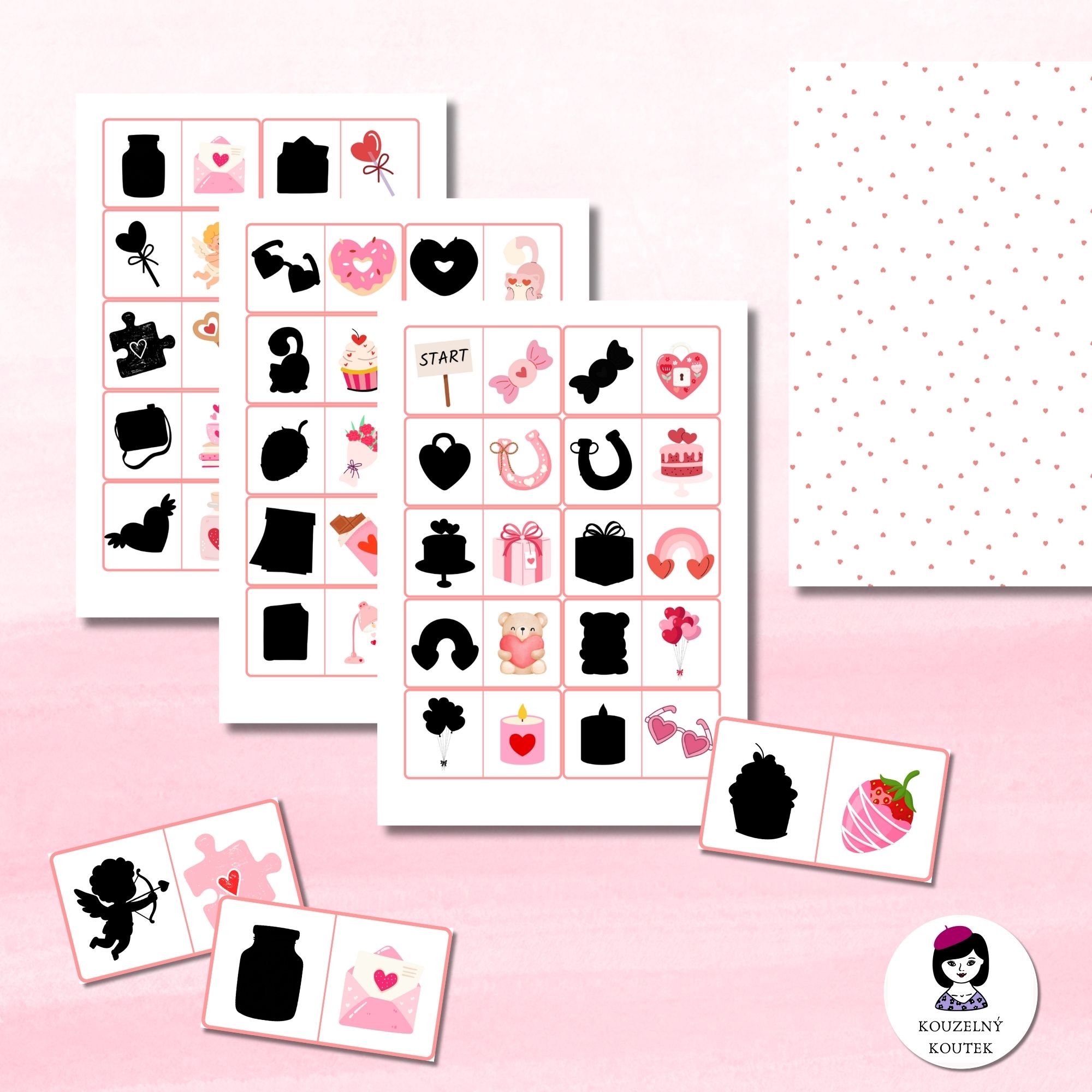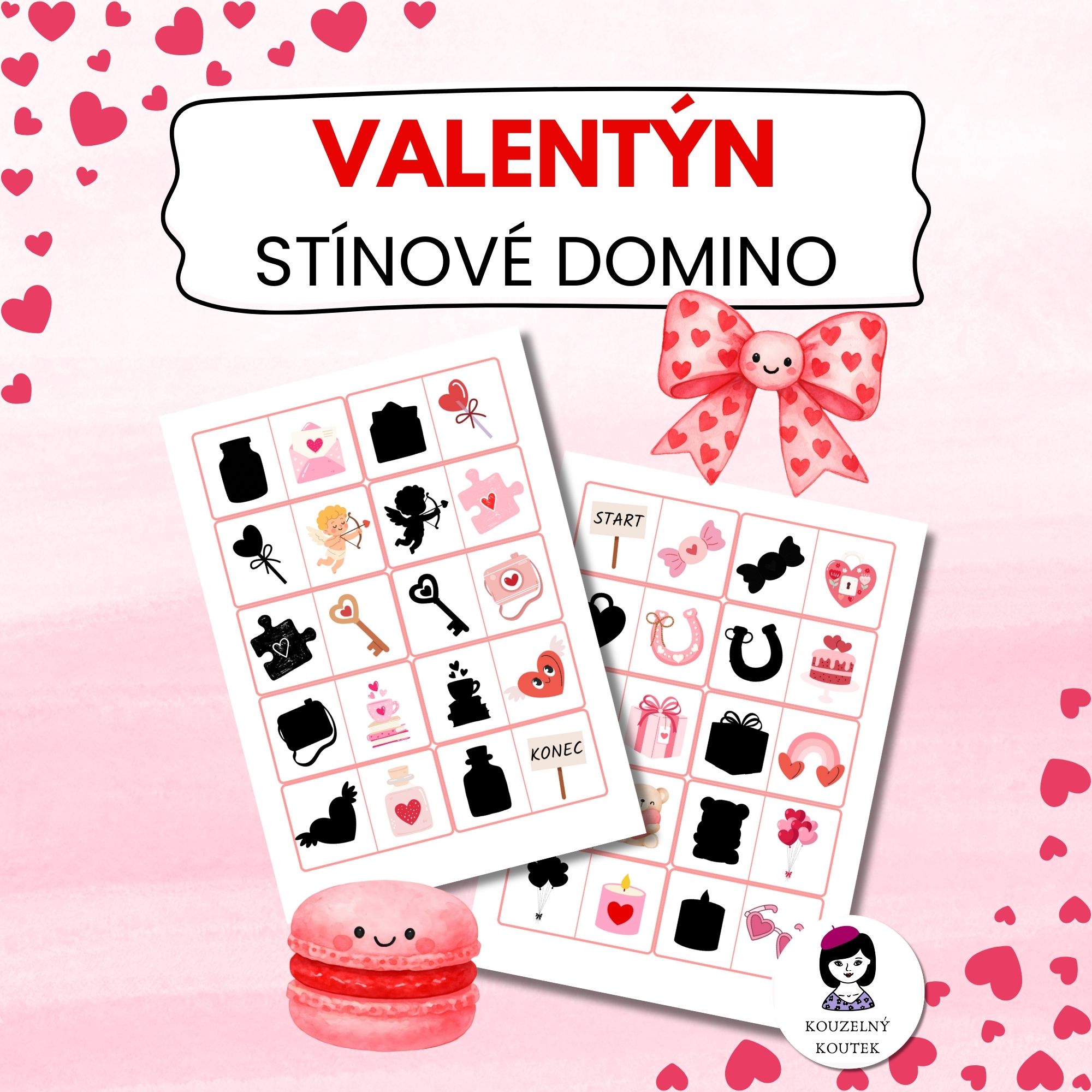 Domino je veselá a barevná hra. Obsahuje 30 barevných kartiček s valentýnskými obrázky.