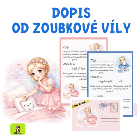 Materiál obsahuje verzi pro kluky i holky, pro oba v růžové i modré variantě. K němu i obálku - buď nalepíte grafiku na klasickou obálku anebo vytisknete list, přehnete v půlce,po krajích slepíte a máte obálku rovněž hotovou. Případně lze využít i jako pohled - kdy si dítě na druhou stranu nalepí fotku bez prvního zubu. :)