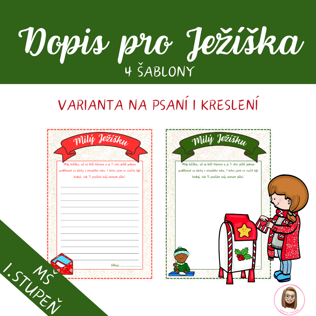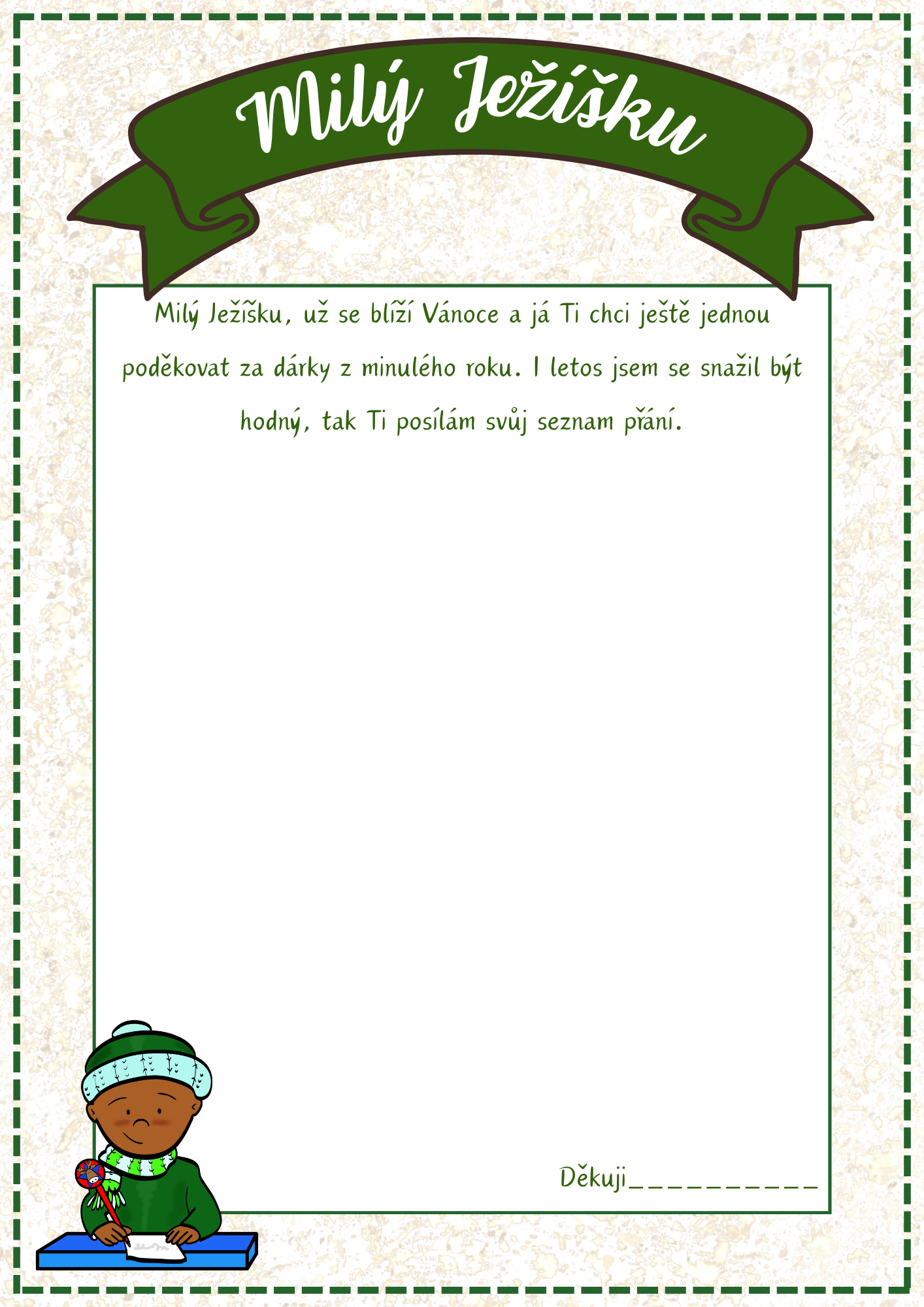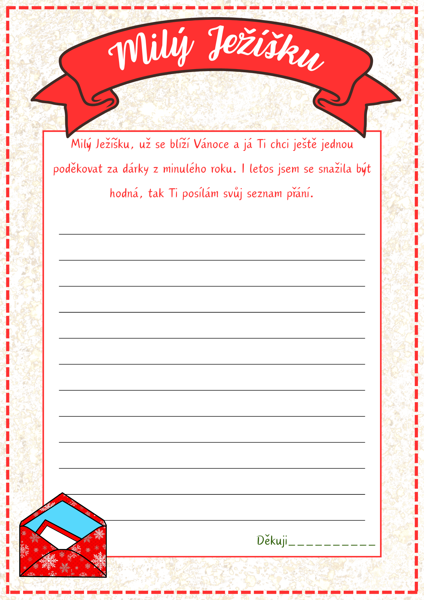 Vánoční dopis pro Ježíška – 4 šablony s linkami i bez linek a sada veselých známek na obálky. Ideální aktivita pro adventní čas, kdy si děti mohou napsat nebo nakreslit svá tajná přání.