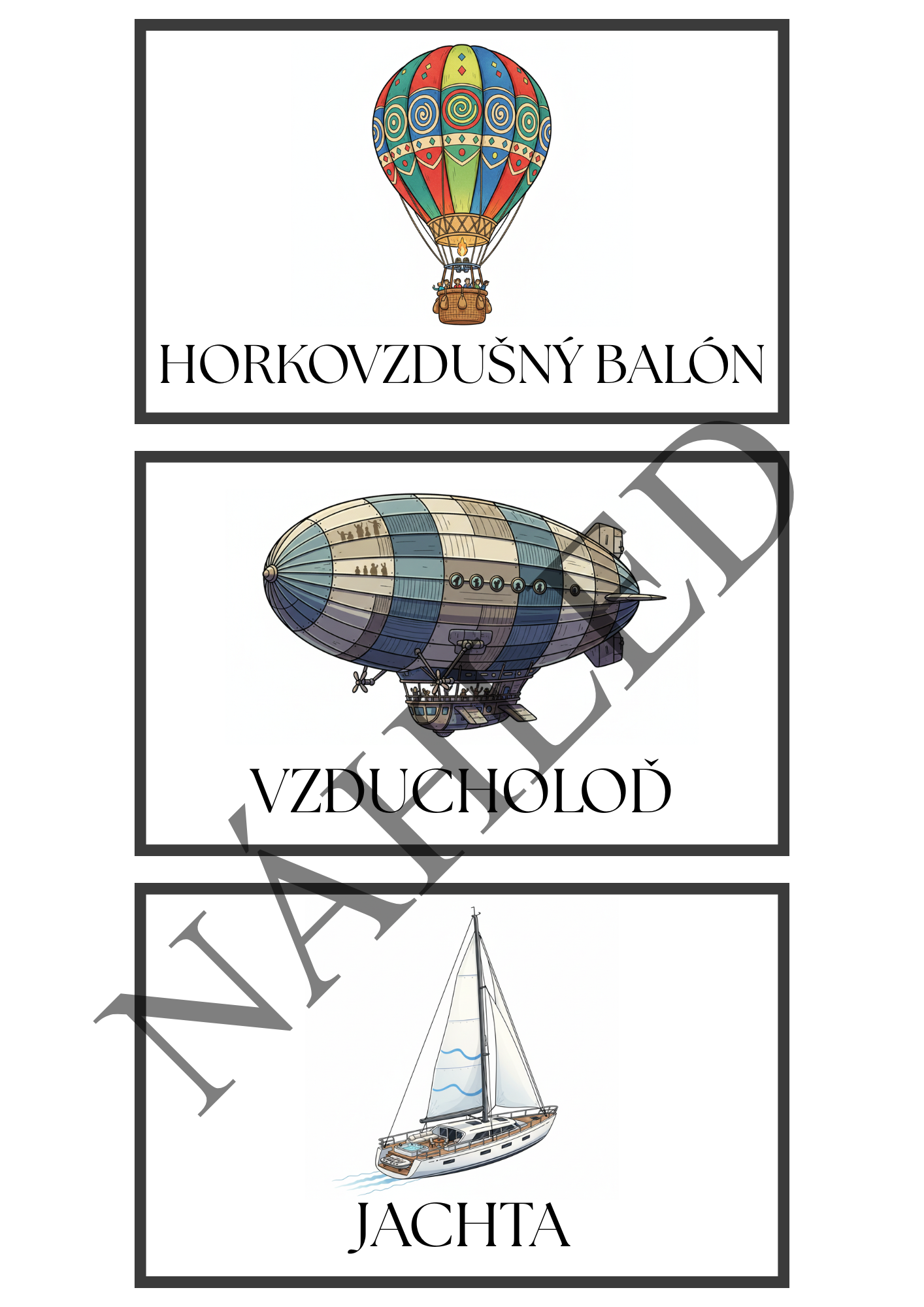 - 4 demonstrační obrázky - po čem se dá dopravit (silnice, koleje, voda, obloha)